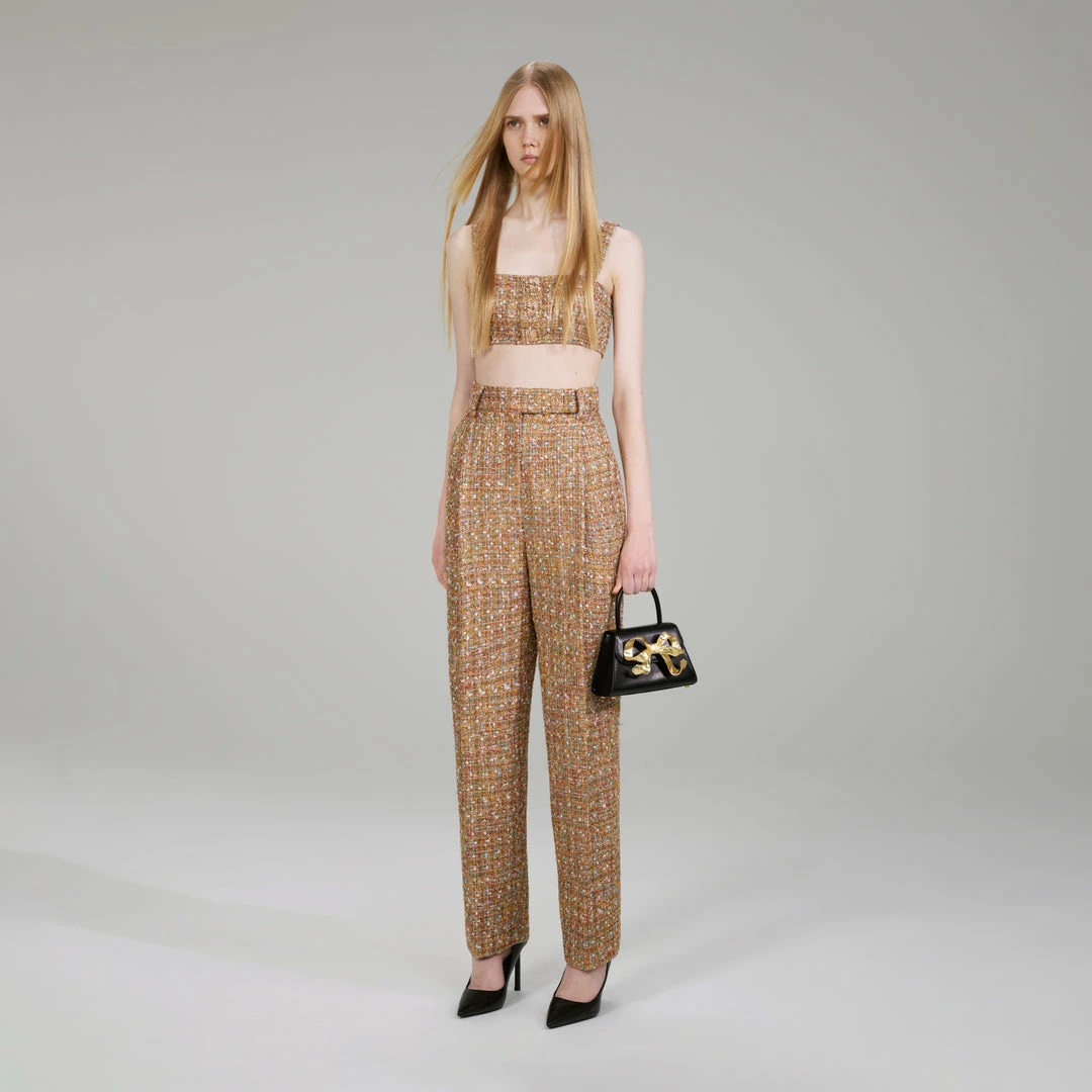 Self-portrait NEW ARRIVALS Gold Tinsel Boucle Trousers