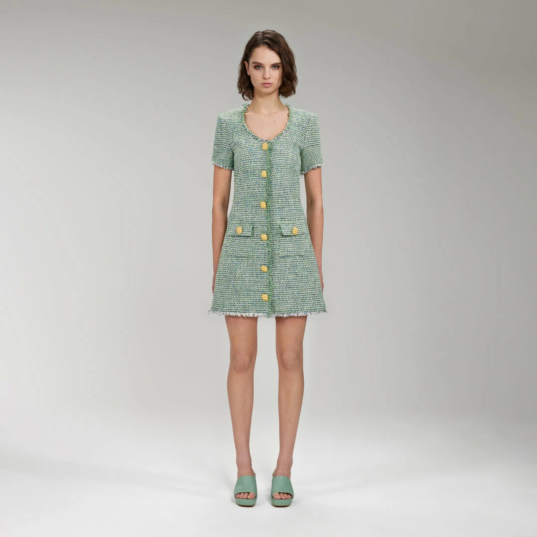 Self-portrait NEW ARRIVALS Green Boucle Mini Dress