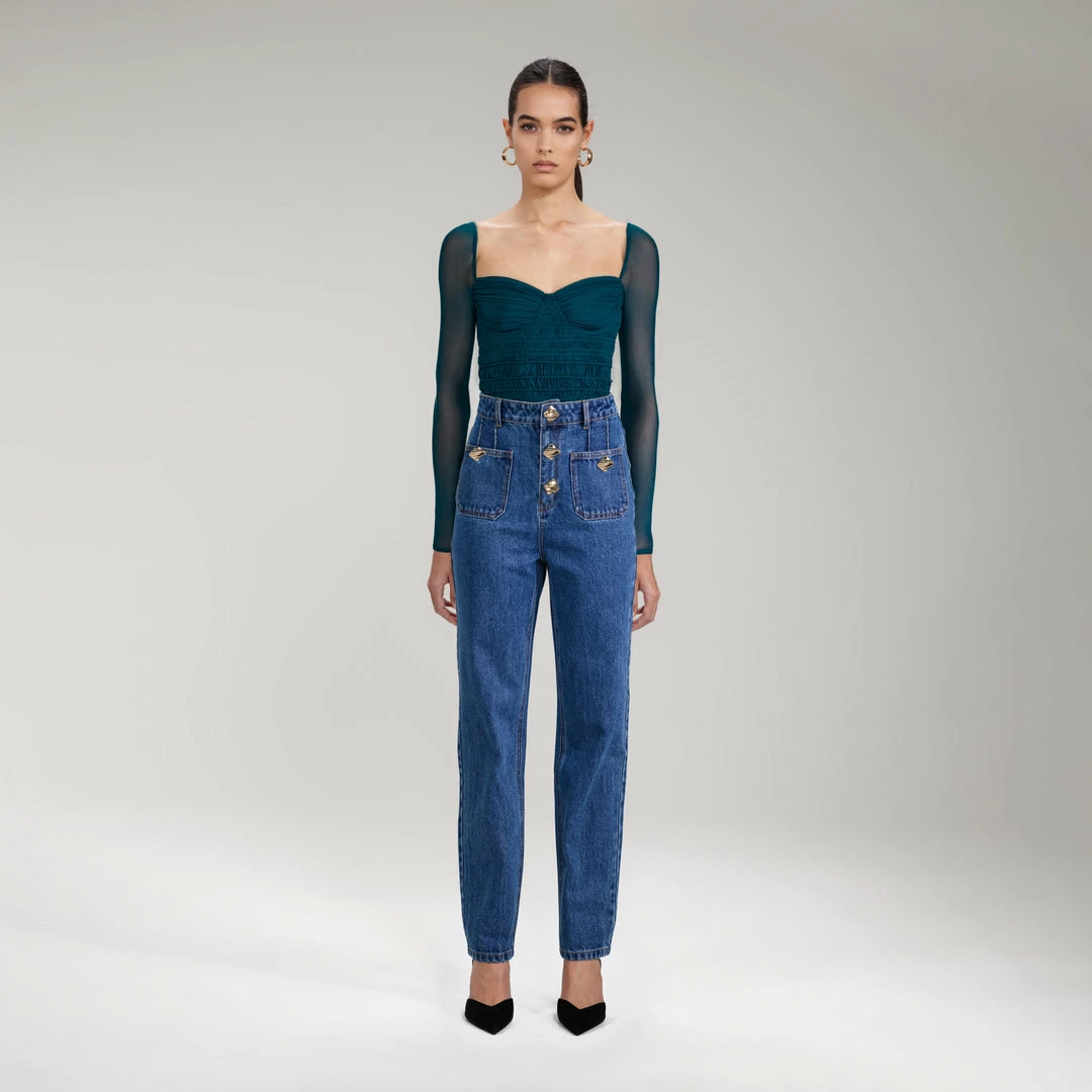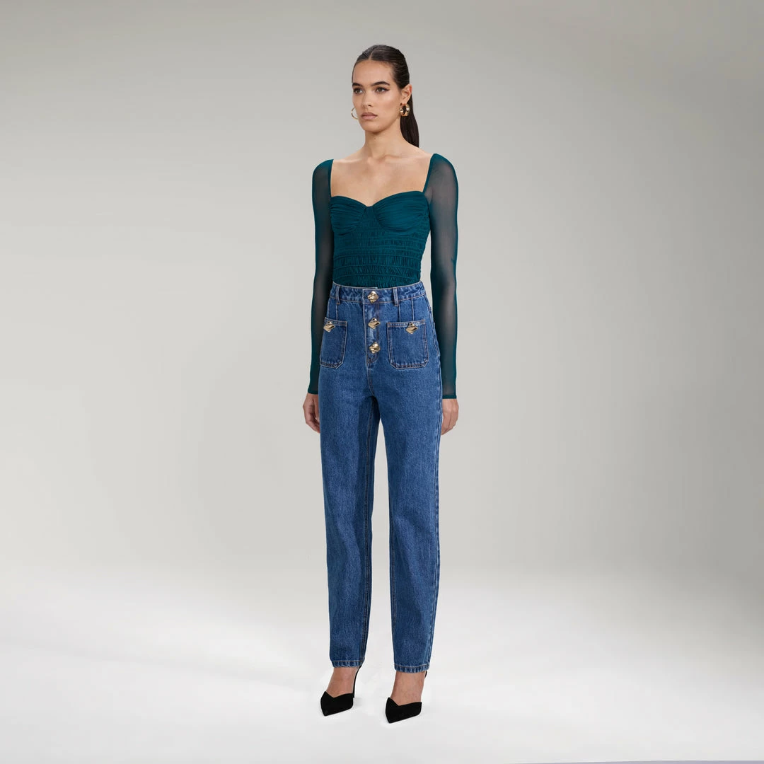 Be the first to review “Self-portrait NEW ARRIVALS Green Shirred Powermesh Top” Cancel reply