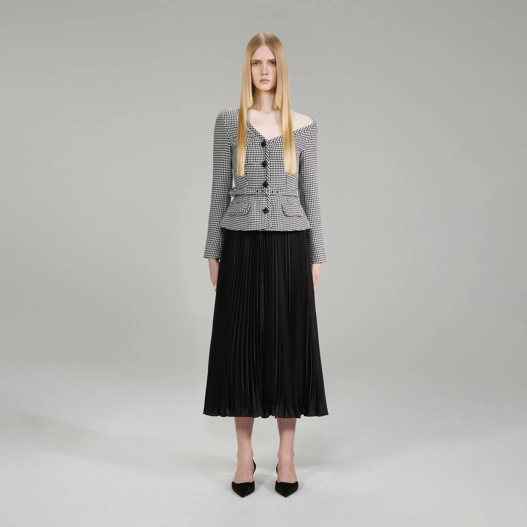 Self-portrait NEW ARRIVALS Houndstooth And Chiffon Midi Dress