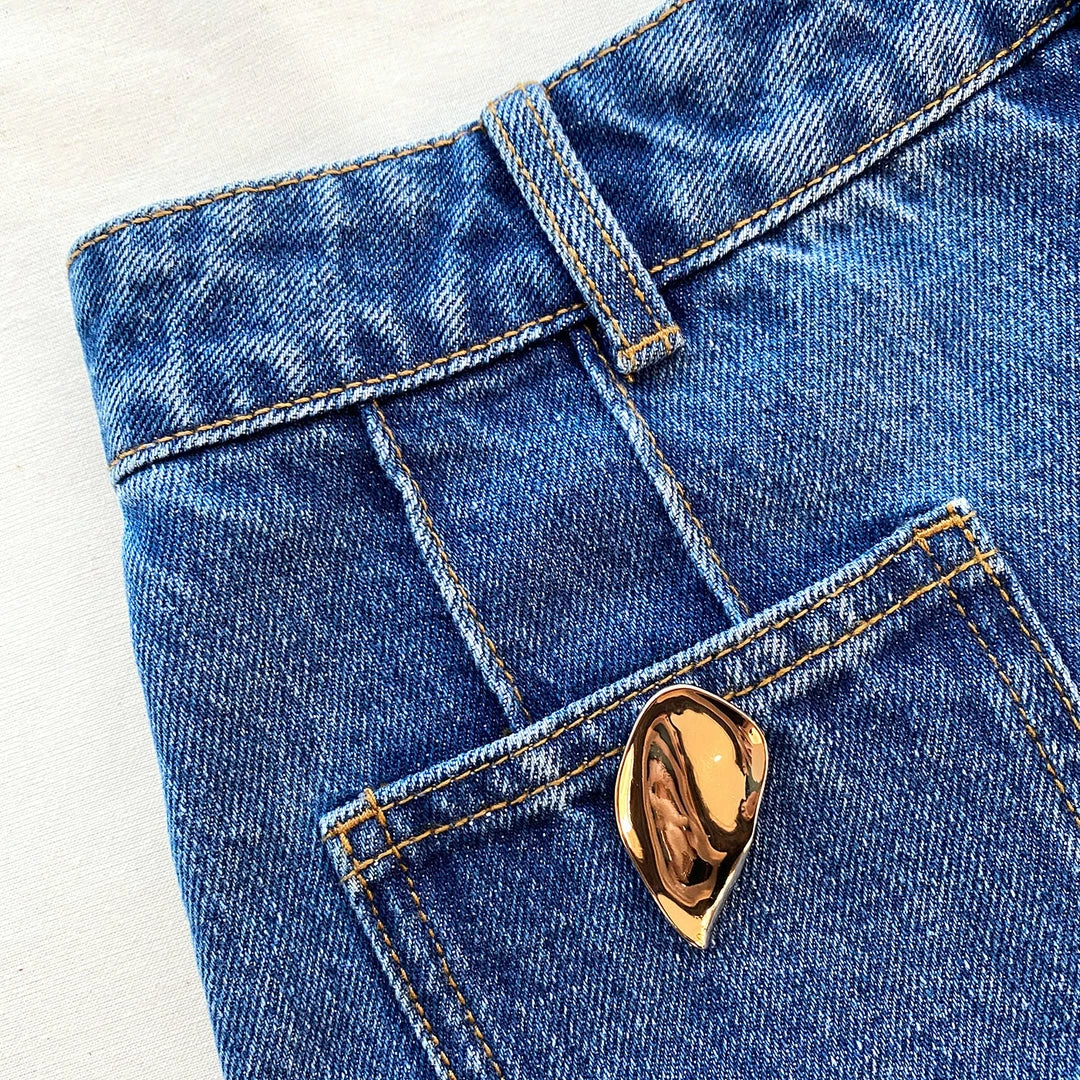 Embellishments can inject new life into a well-worn classic. Shorter in length, these straight cut jeans sit high on the waist for a leg-lengthening fit, while gold statement buttons add a hardware kick. Jazz up your everyday t-shirt and jeans combination and style it with a sleeveless turtleneck and heels for an unexpected evening look. Check the Size Guide to find your perfect fit.