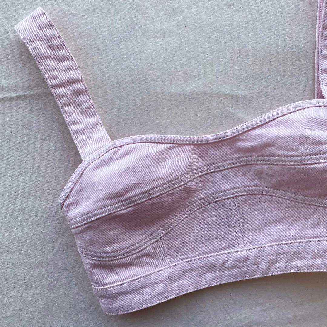 The baby pink hue and flattering lines of this skin-baring cropped top are juxtaposed with the functionality of denim, adding structure to its feminine design. A sweetheart neckline frames the face and décolletage, while a back zipper adds ease. Layer it under cardigans and blazers at the office, and dress it up for parties with a body-hugging midi skirt and peep-toe heels. Check the Size Guide to find your perfect fit.