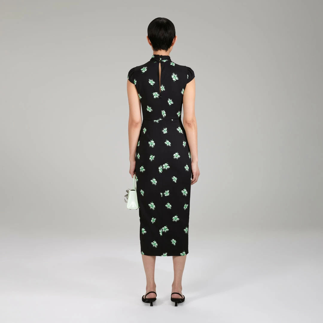 Self-portrait NEW ARRIVALS Pansy Print Stretch Crepe Midi Dress