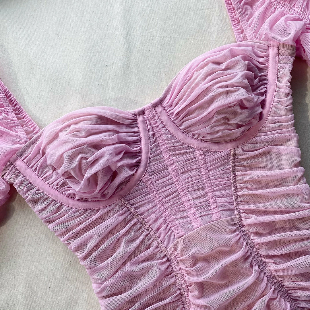 Bubblegum pink mesh gives this dress its statement-making punch, but its the breathable ruched fabric and figure-hugging silhouette that make it a winner. A sweetheart neckline creates a flattering cut, while sheer panelling on the bodice nips you in at the waist. Style it with nude pumps for a girl’s night out you won’t forget.