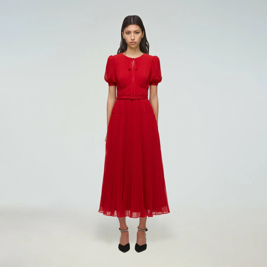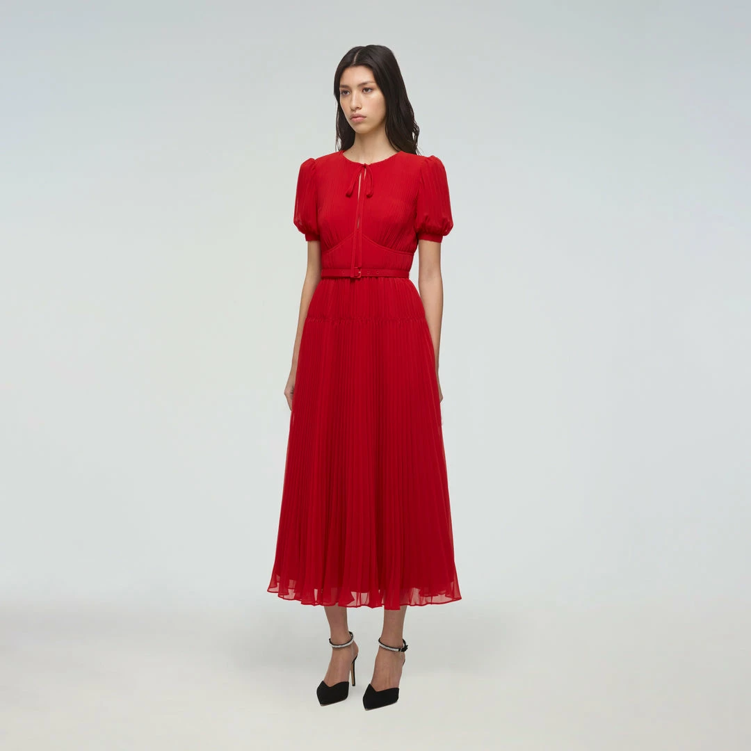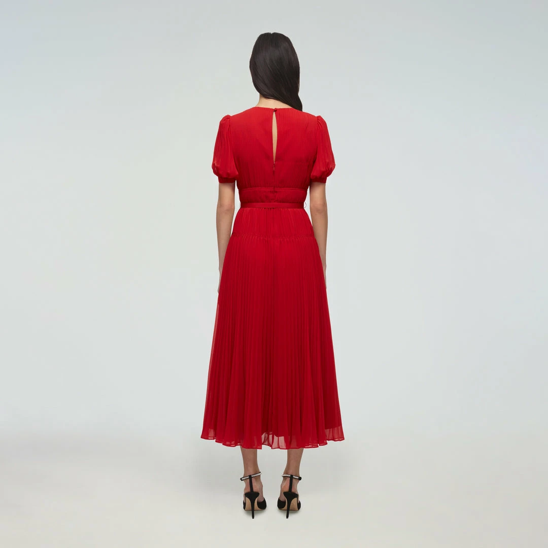 Self-portrait NEW ARRIVALS Red Chiffon Midi Dress