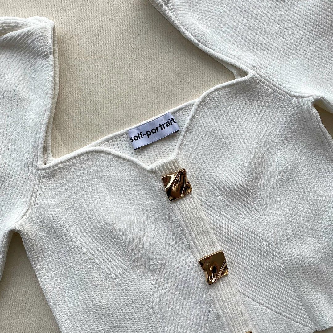 Be the first to review “Self-portrait NEW ARRIVALS White Long Sleeve Ribbed Knit Midi Dress” Cancel reply