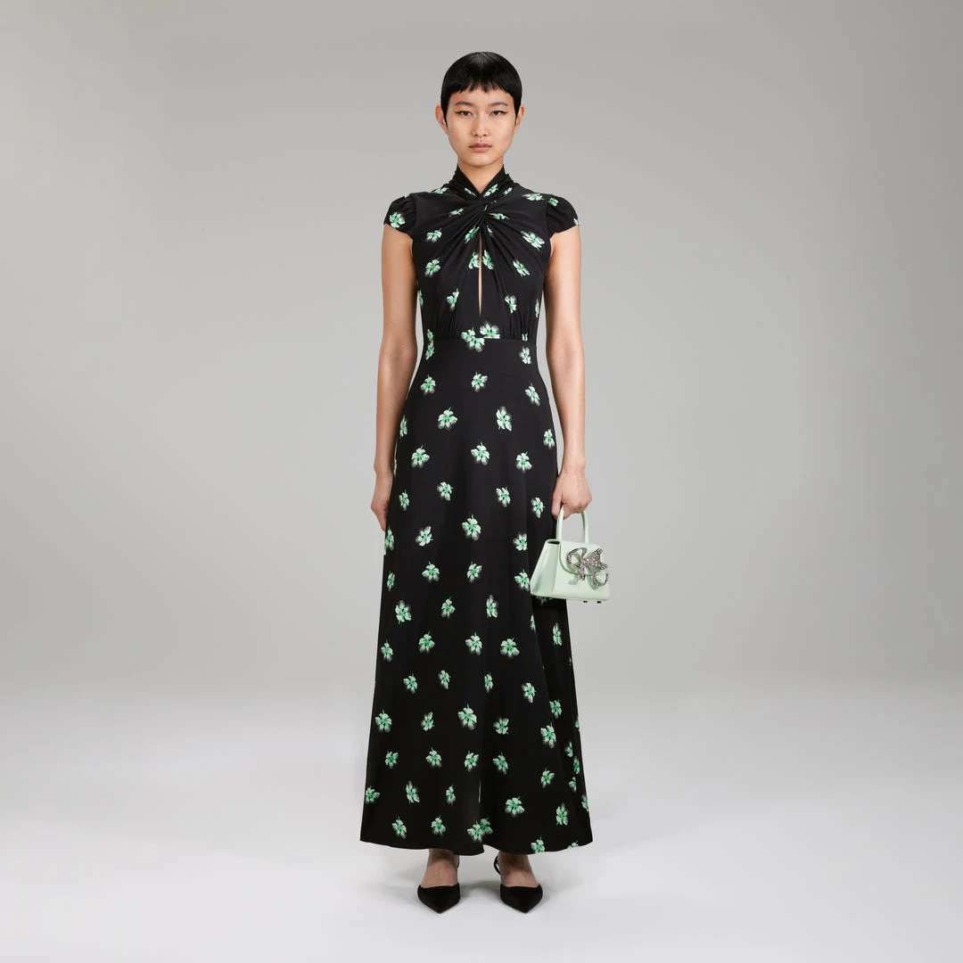 Self-portrait Pansy Print Stretch Crepe Maxi Dress NEW ARRIVALS
