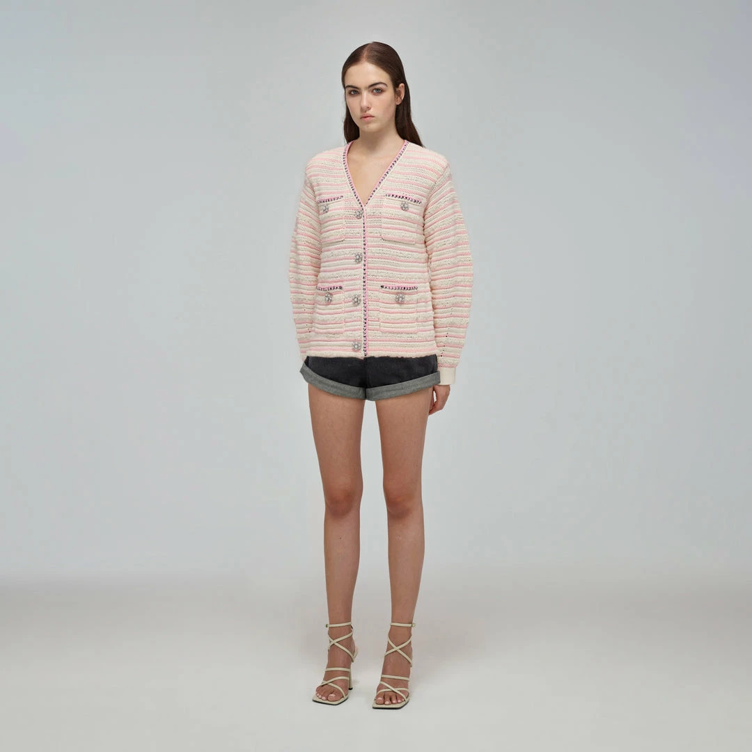 Self-portrait Pastel Multi Stripe Knit Oversized Cardigan READY TO WEAR