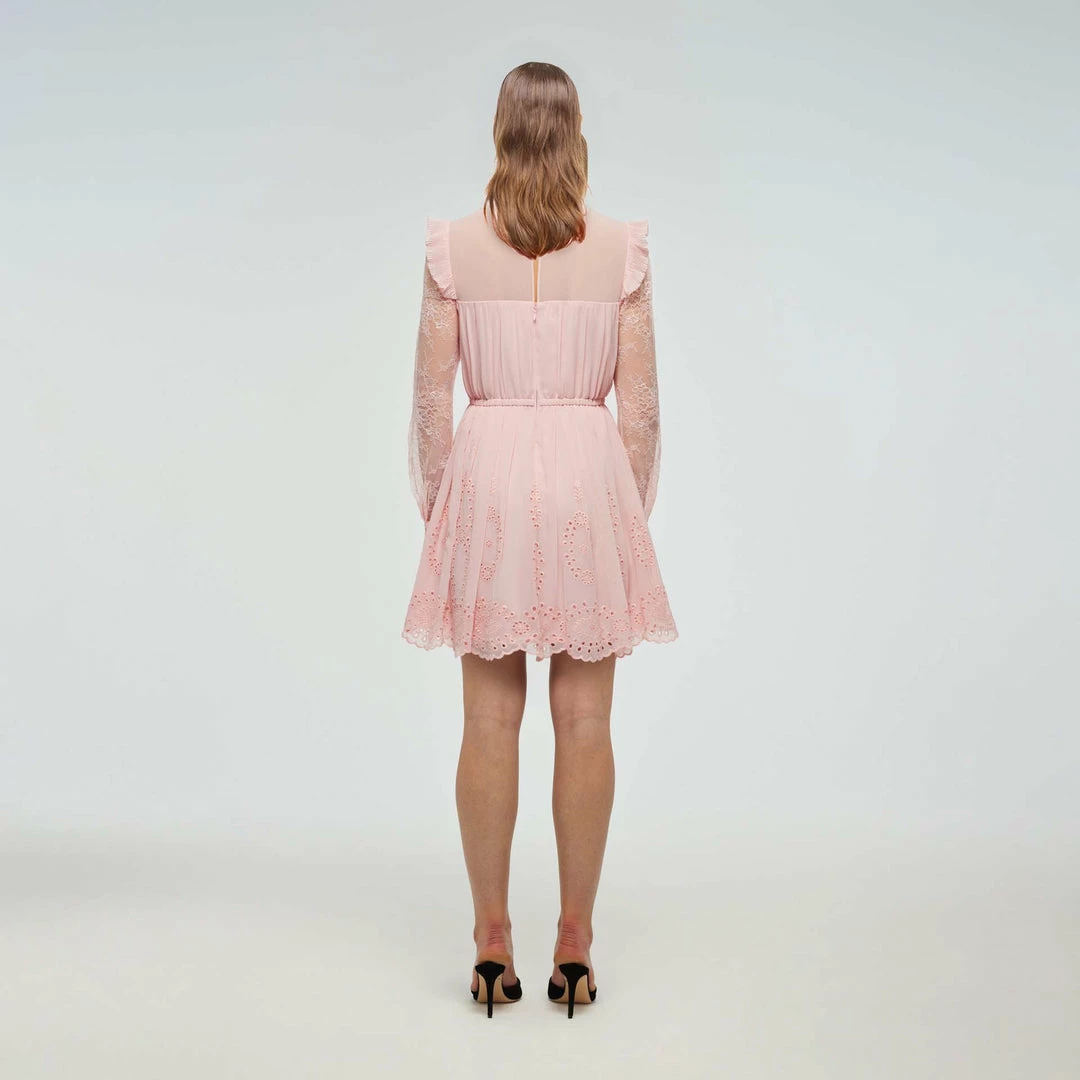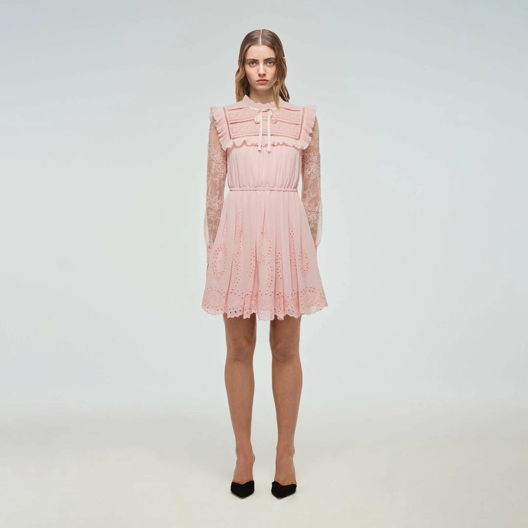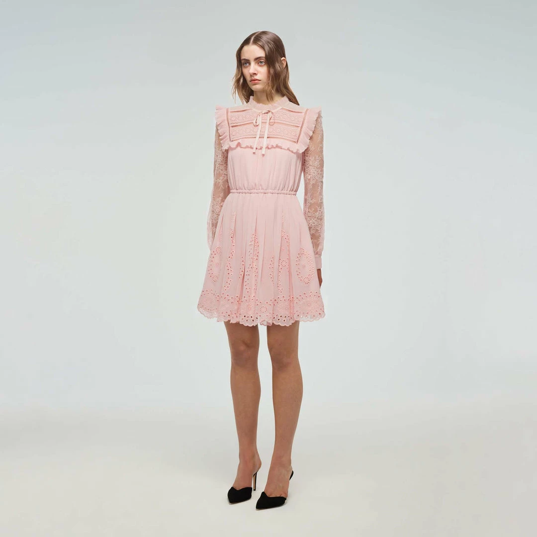 Self-portrait Pink Broderie Chiffon Mini Dress Dresses