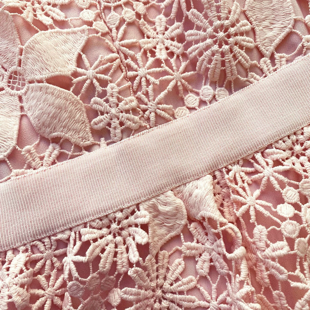This pink maxi dress is cut from floral guipure lace. It is designed with a high twist neck and short sleeves. It is fitted at the waist and falls to a tiered maxi skirt. Check the Size Guide to find your perfect fit.