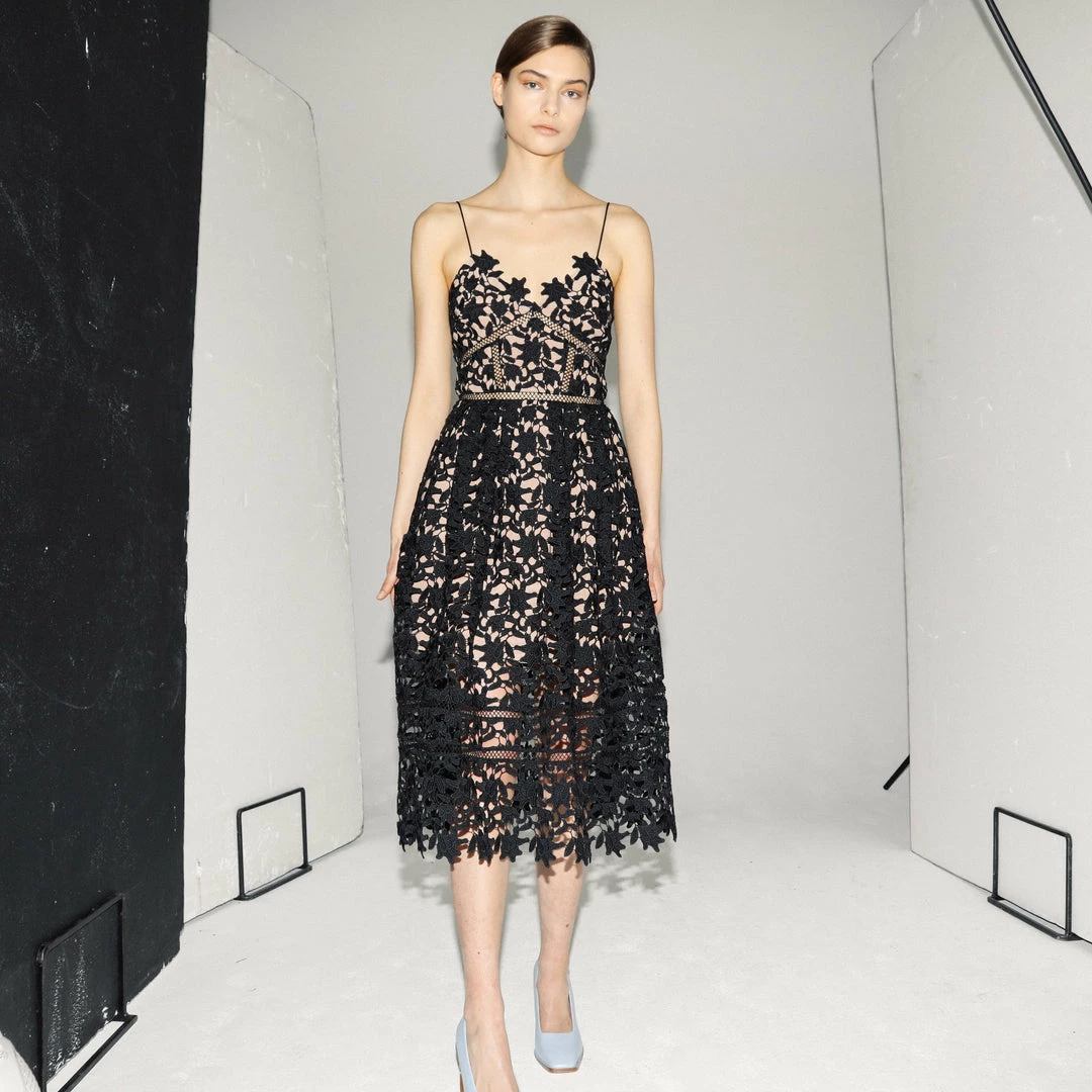 Self-portrait READY TO WEAR Black Azaelea Midi Dress