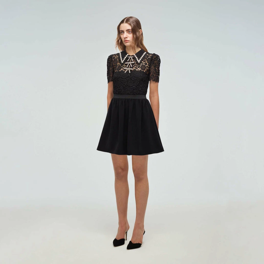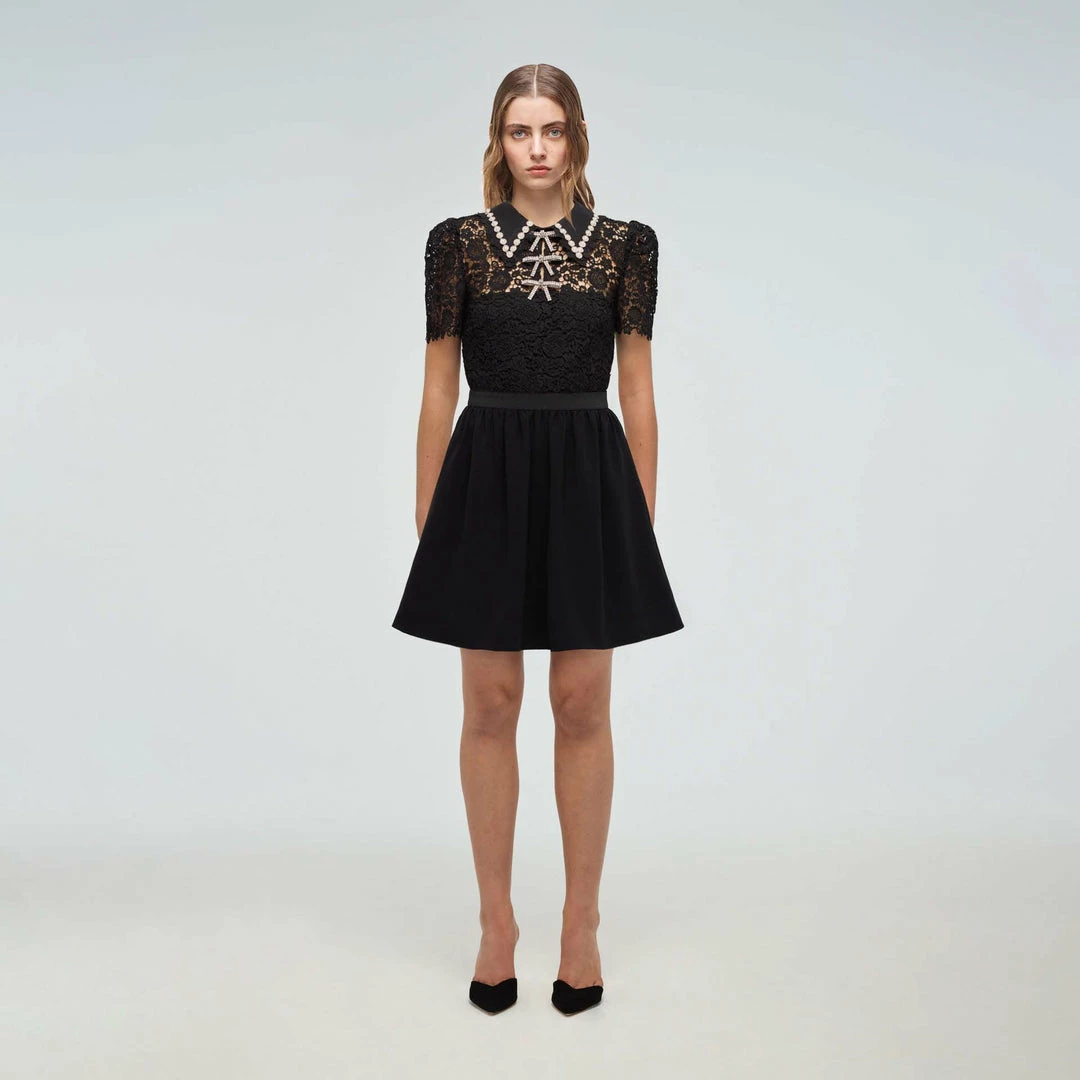 Self-portrait READY TO WEAR Black Guipure Mini Dress