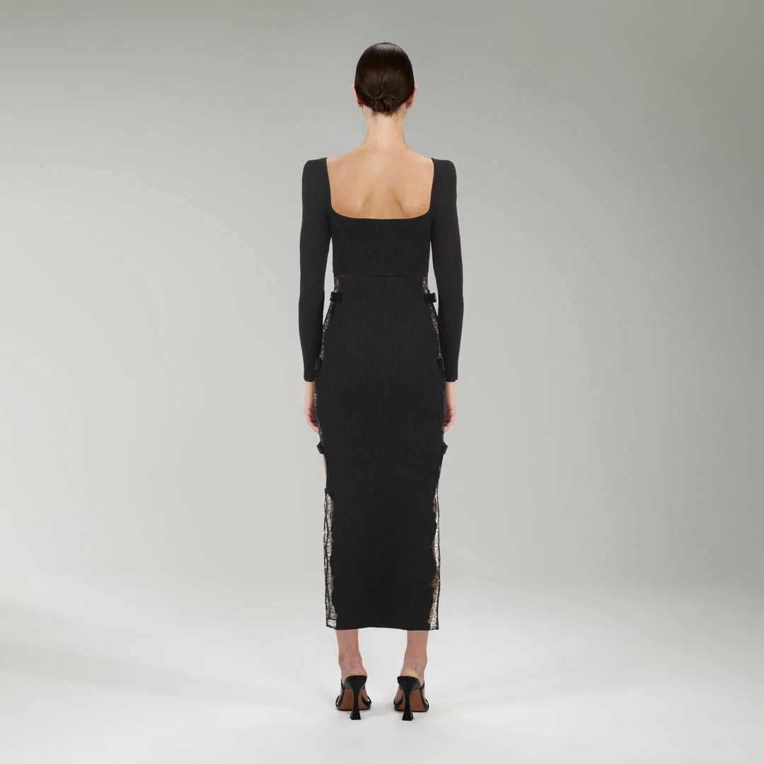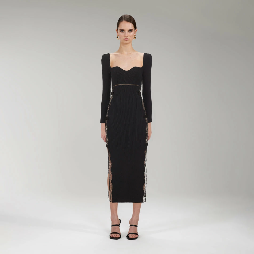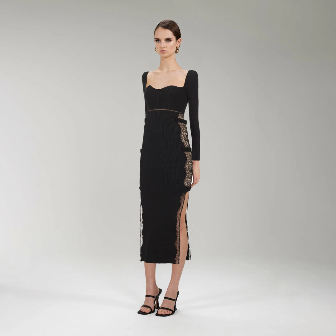 Self-portrait READY TO WEAR Black Knit Lace Midi Dress