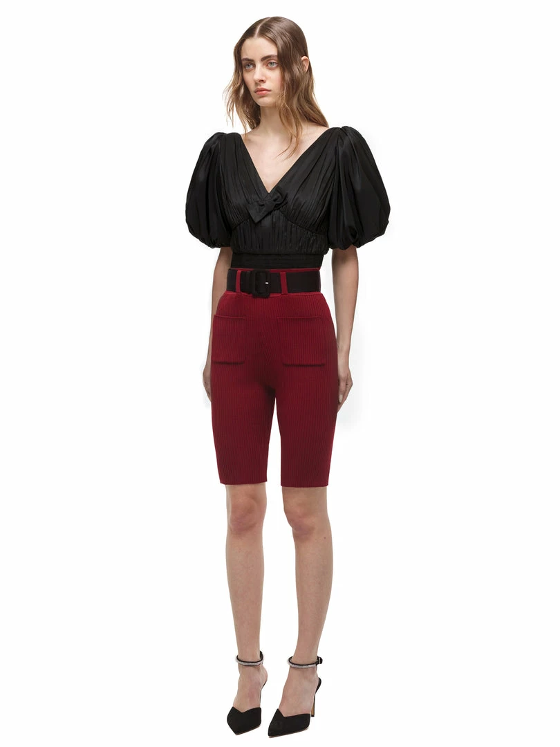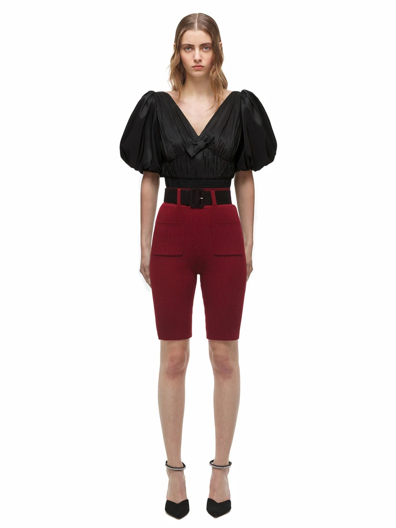 Self-portrait READY TO WEAR Black Taffeta Puff Sleeve Top