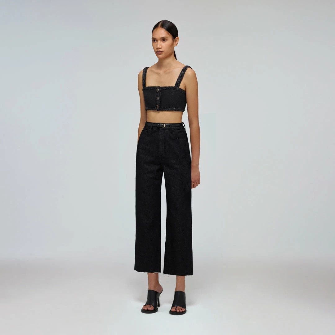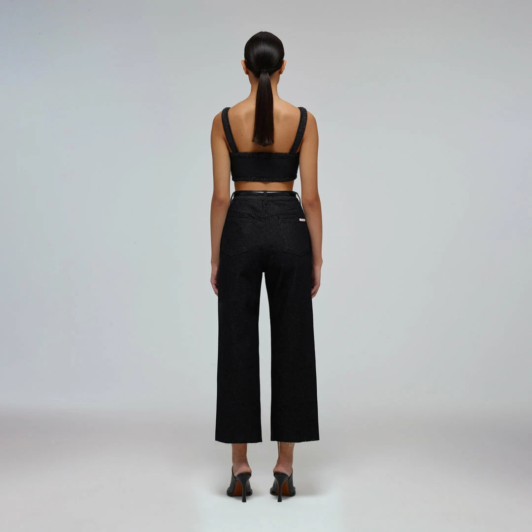 Self-portrait READY TO WEAR Black Textured Weave Crop Top