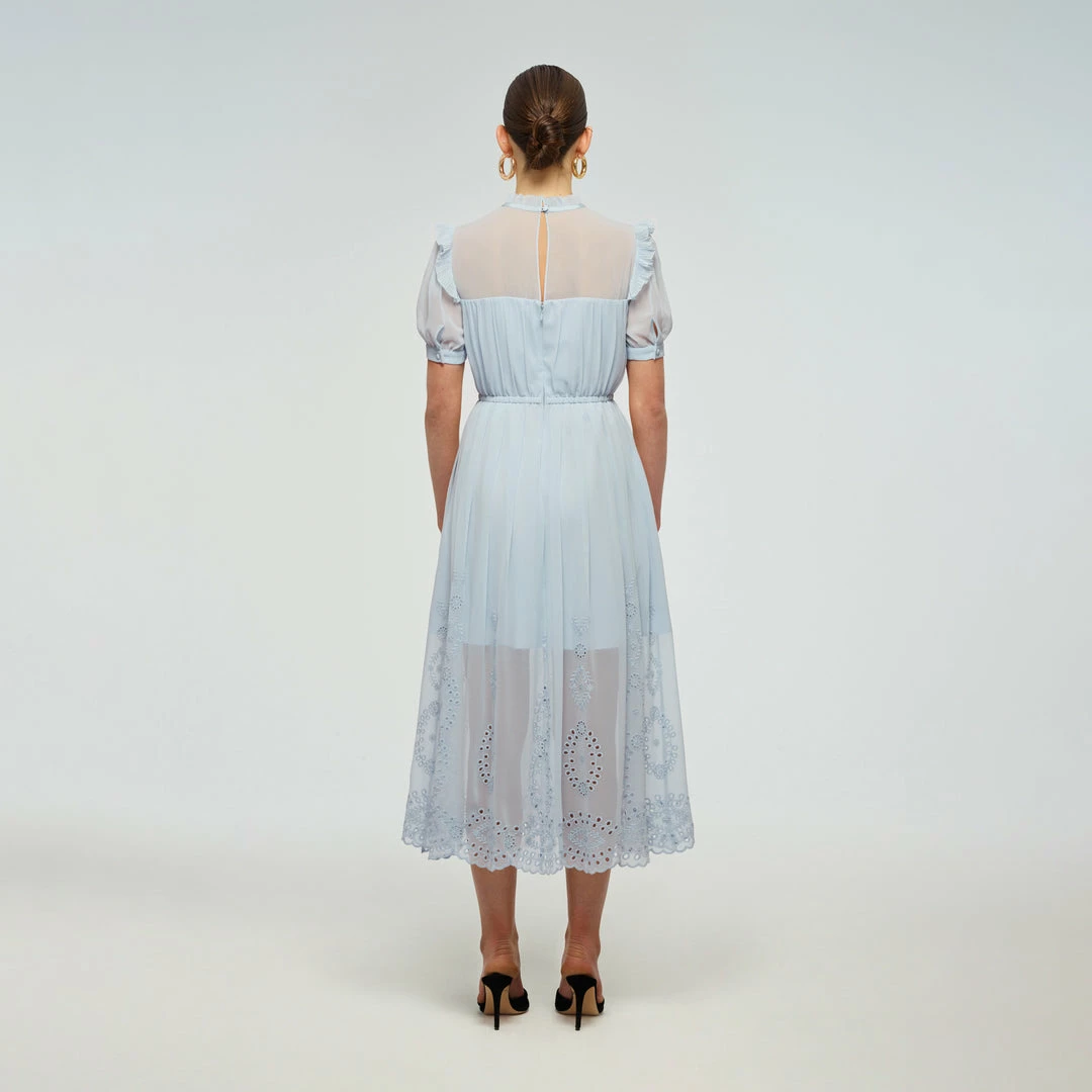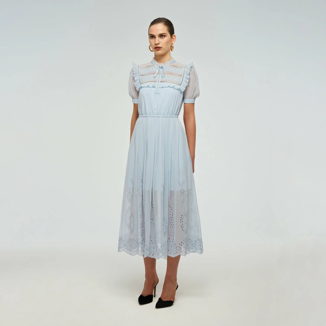 Self-portrait READY TO WEAR Blue Broderie Chiffon Dress