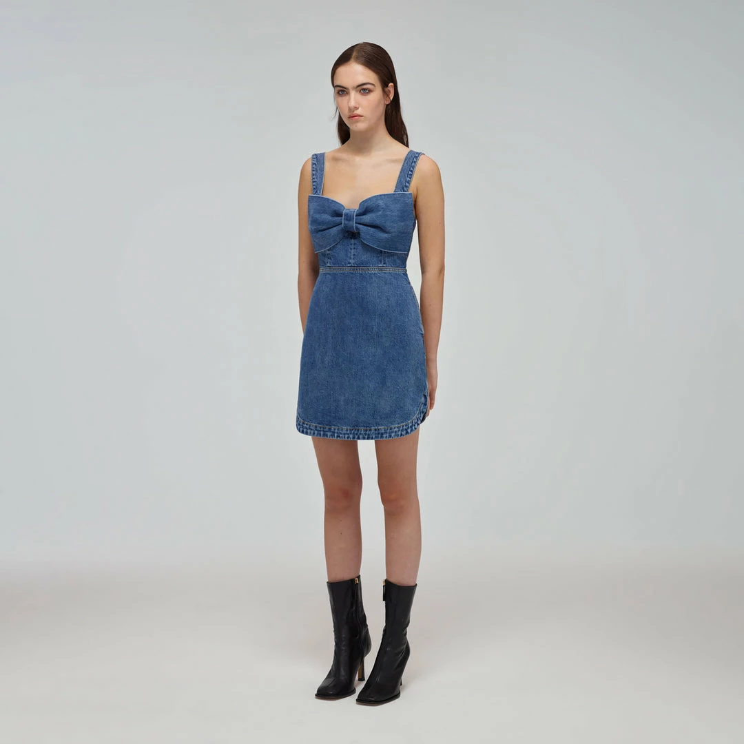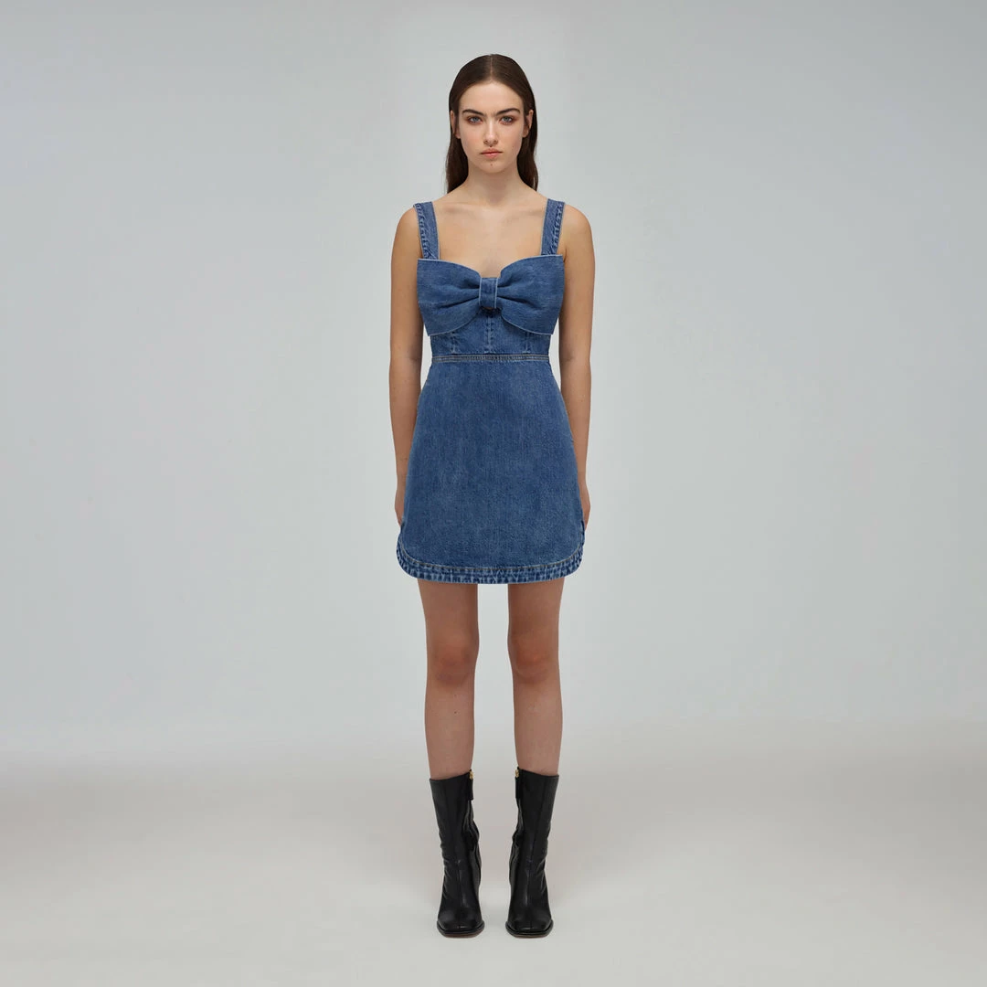 Self-portrait READY TO WEAR Blue Denim Bow Mini Dress