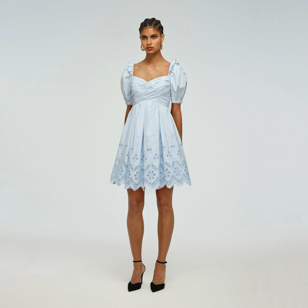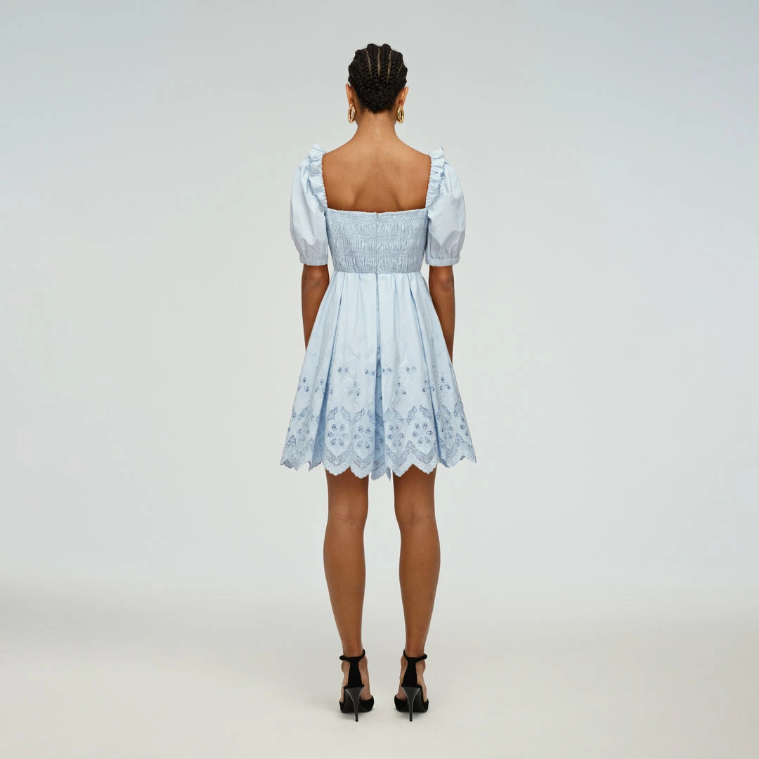 Self-portrait READY TO WEAR Blue Floral Broderie Mini Dress