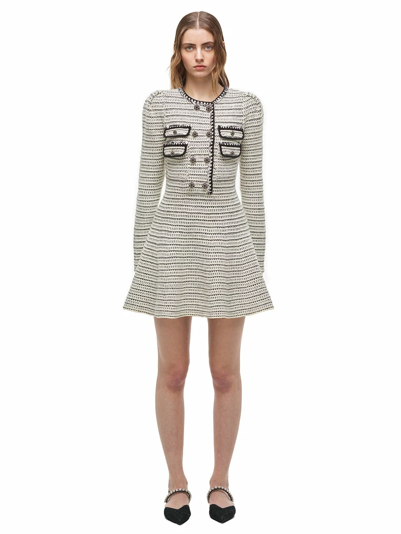 Self-portrait READY TO WEAR Cream And Black Melange Knit Dress