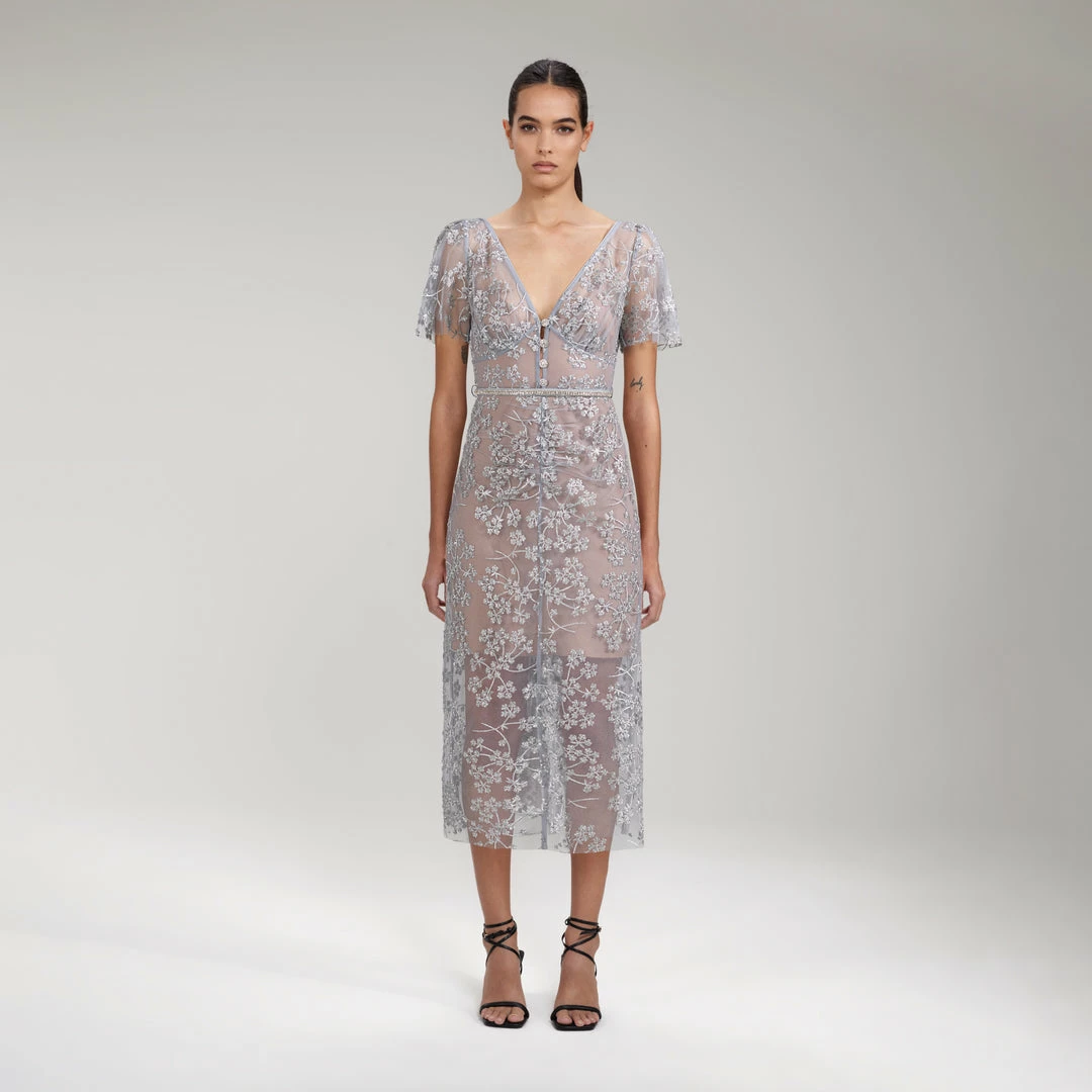 Self-portrait READY TO WEAR Embroidered Blossom Fitted Midi Dress