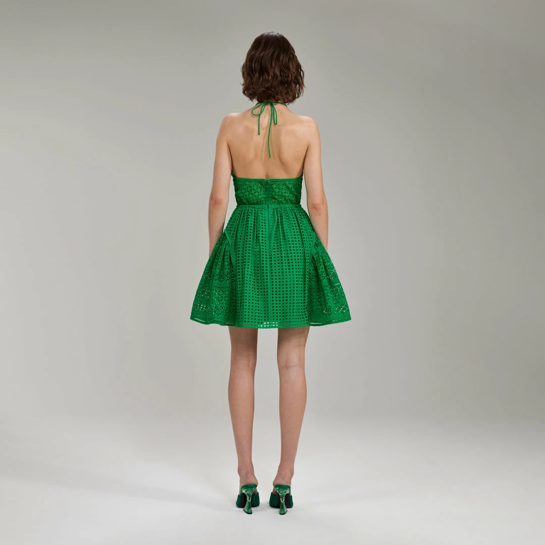 Self-portrait READY TO WEAR Green Cotton Broderie Anglaise Mini Dress