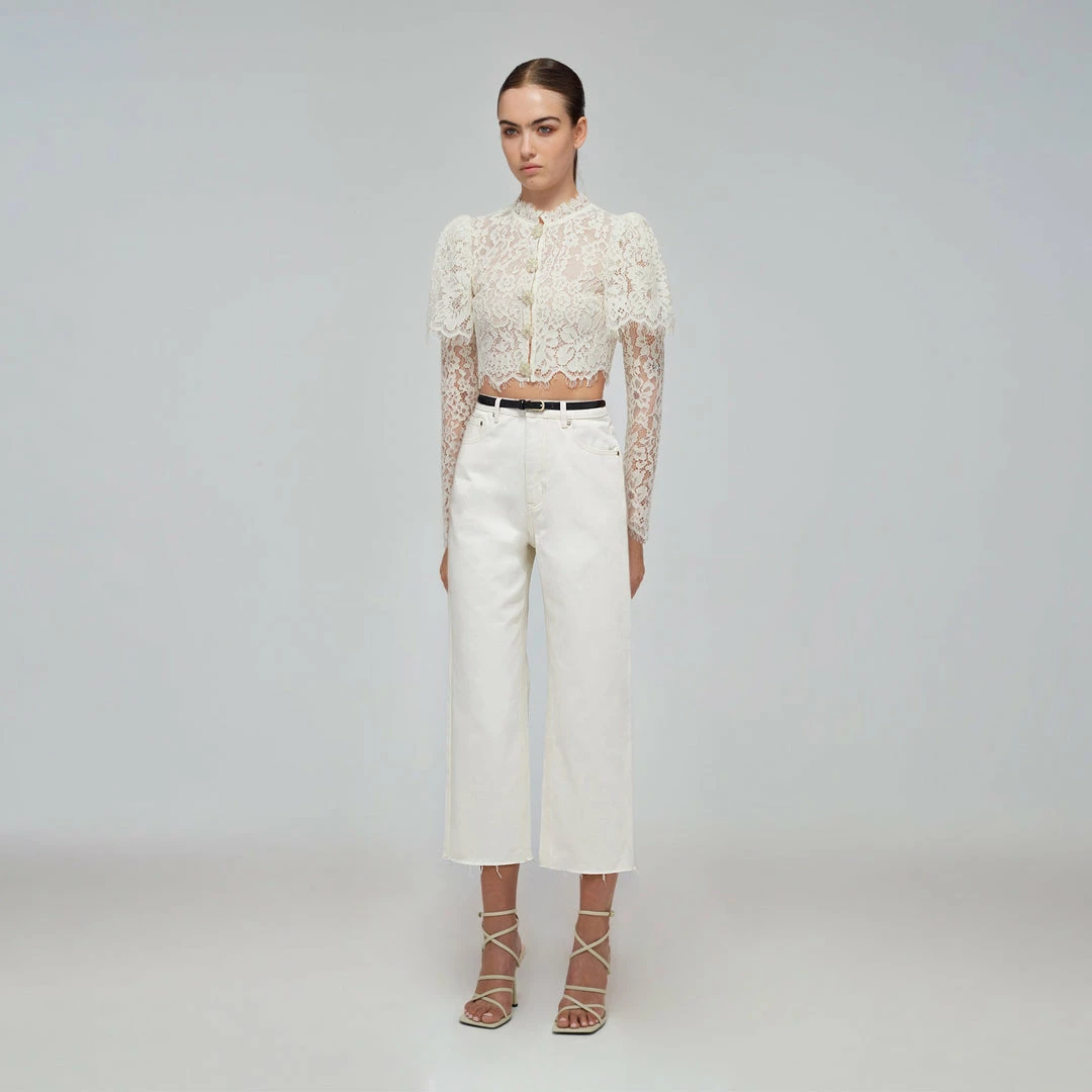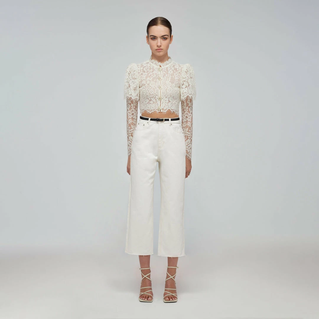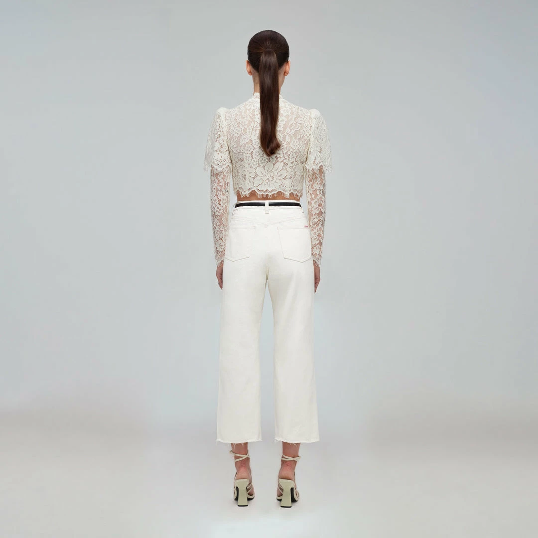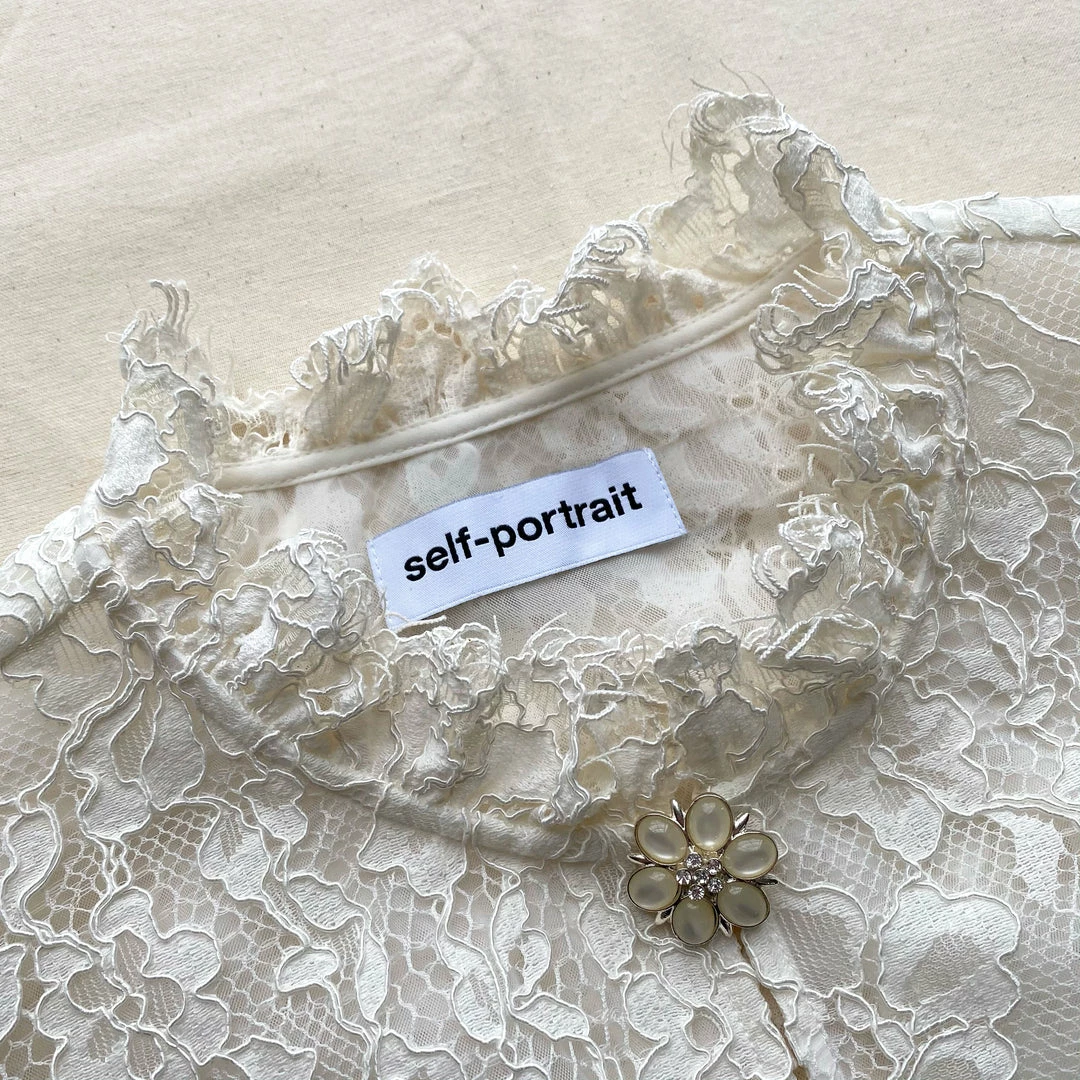 Self-portrait READY TO WEAR Ivory Corded Lace Top