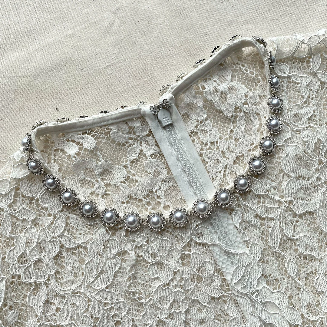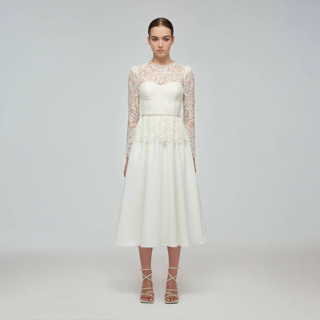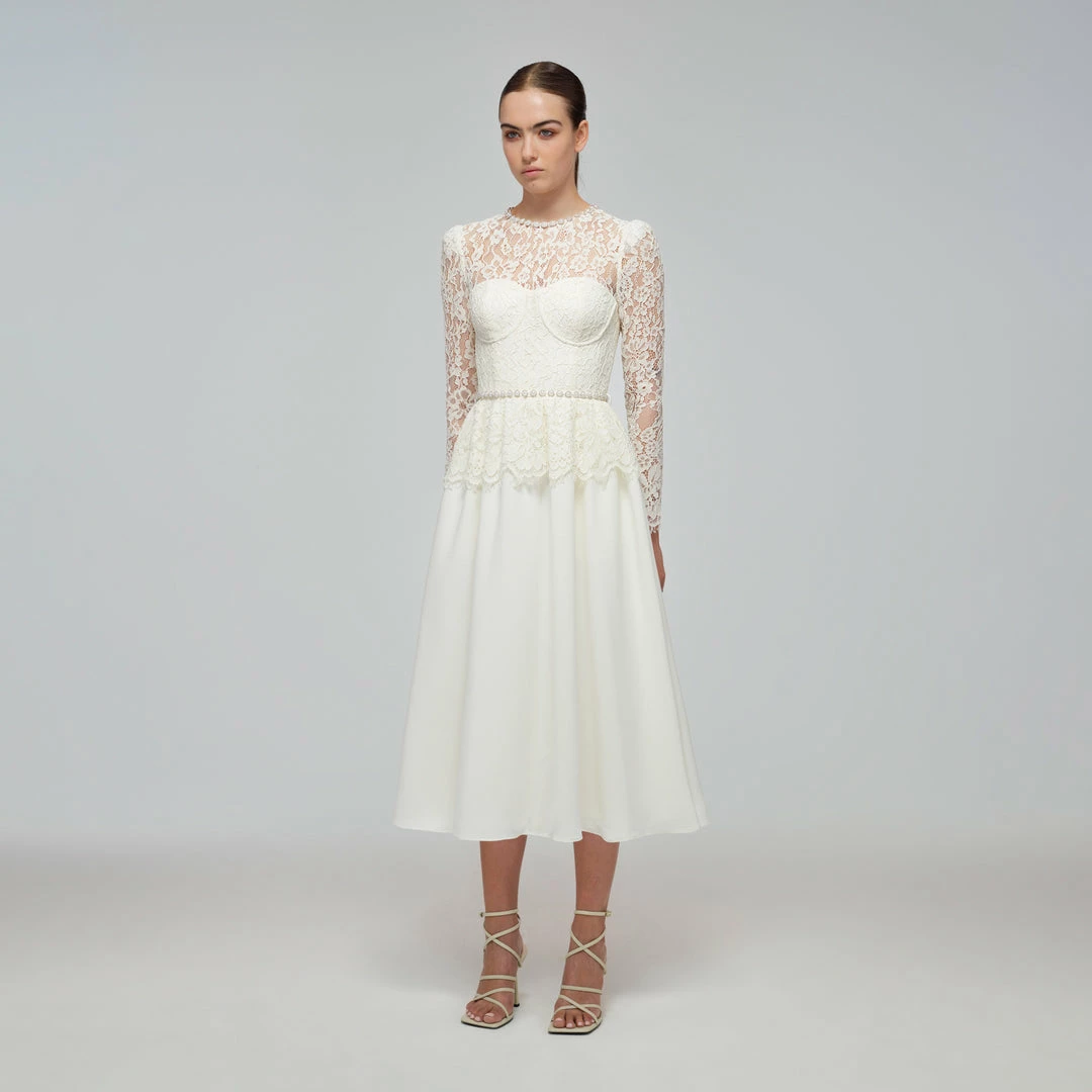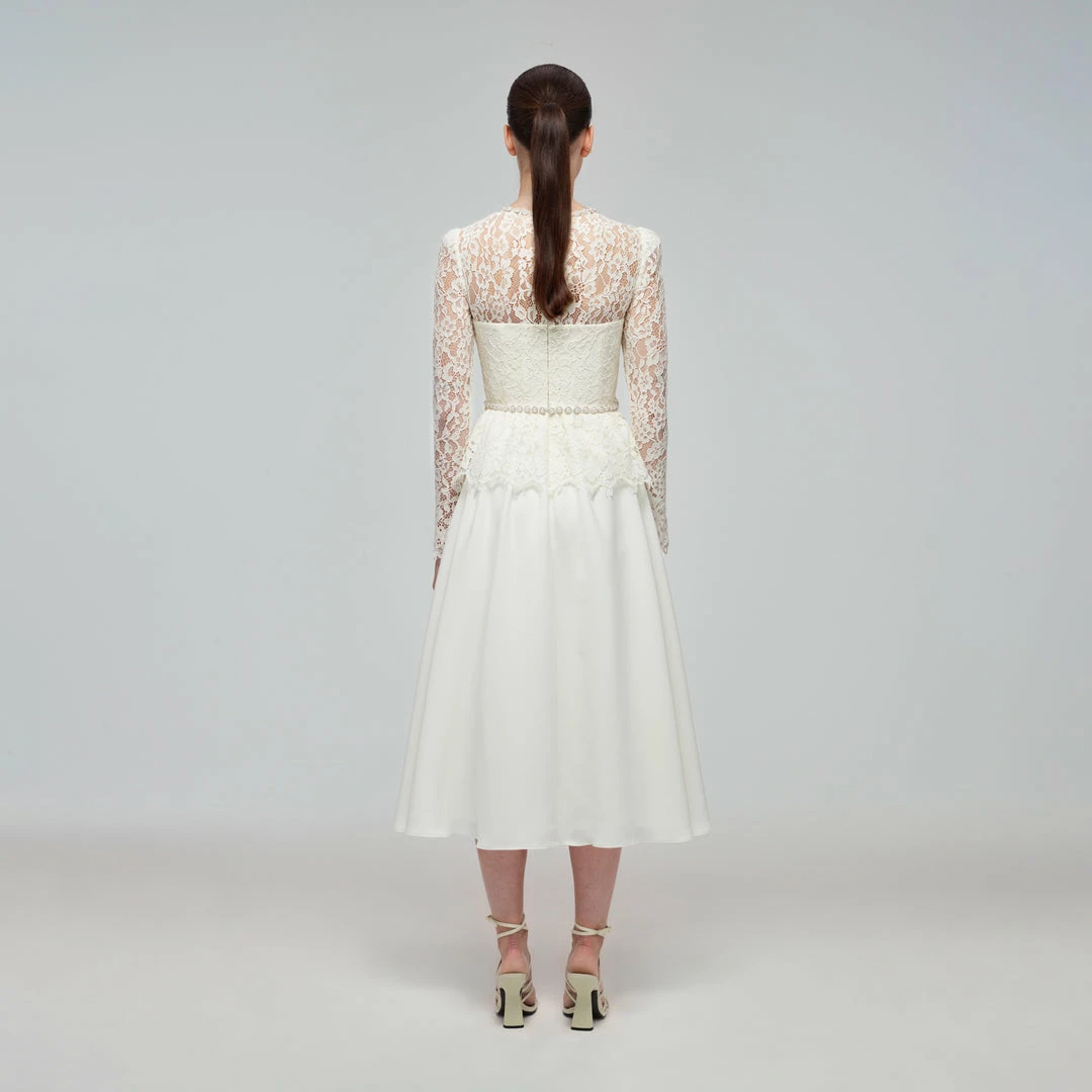 Self-portrait READY TO WEAR Ivory Corded Lace Voluminous Skirt Midi Dress