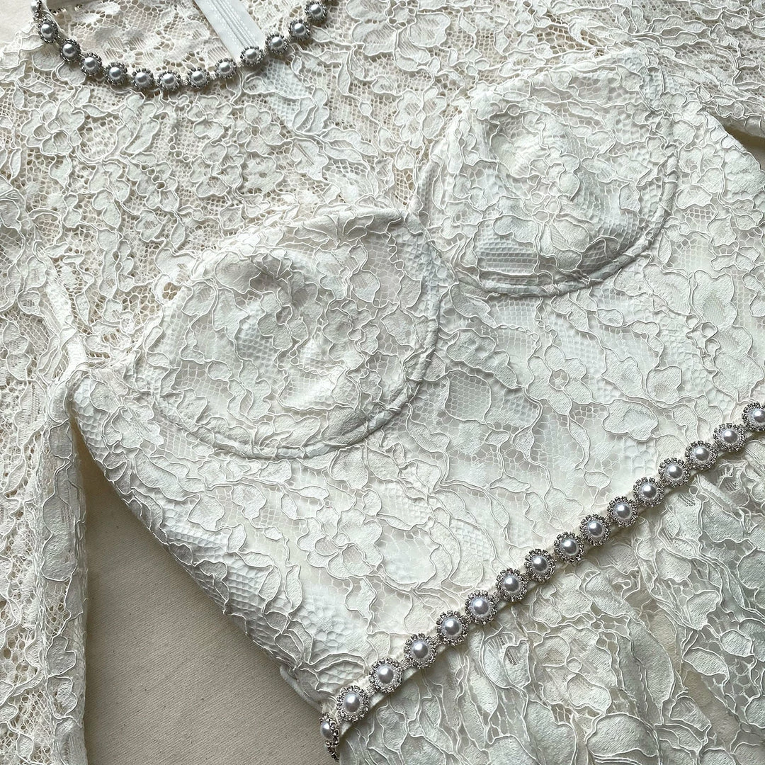 This midi dress is cut from corded lace and crepe. It is designed with long sleeves and bust cups. It is fitted at the waist with a diamanté trim and falls to a peplum hem. The full skirt falls to a midi length. Check the Size Guide to find your perfect fit.