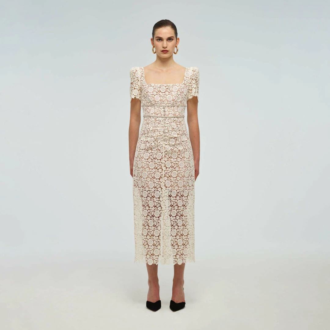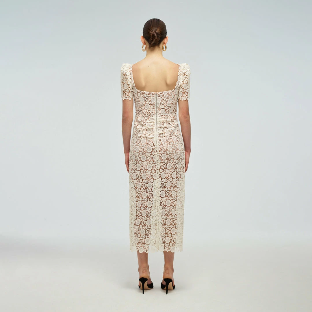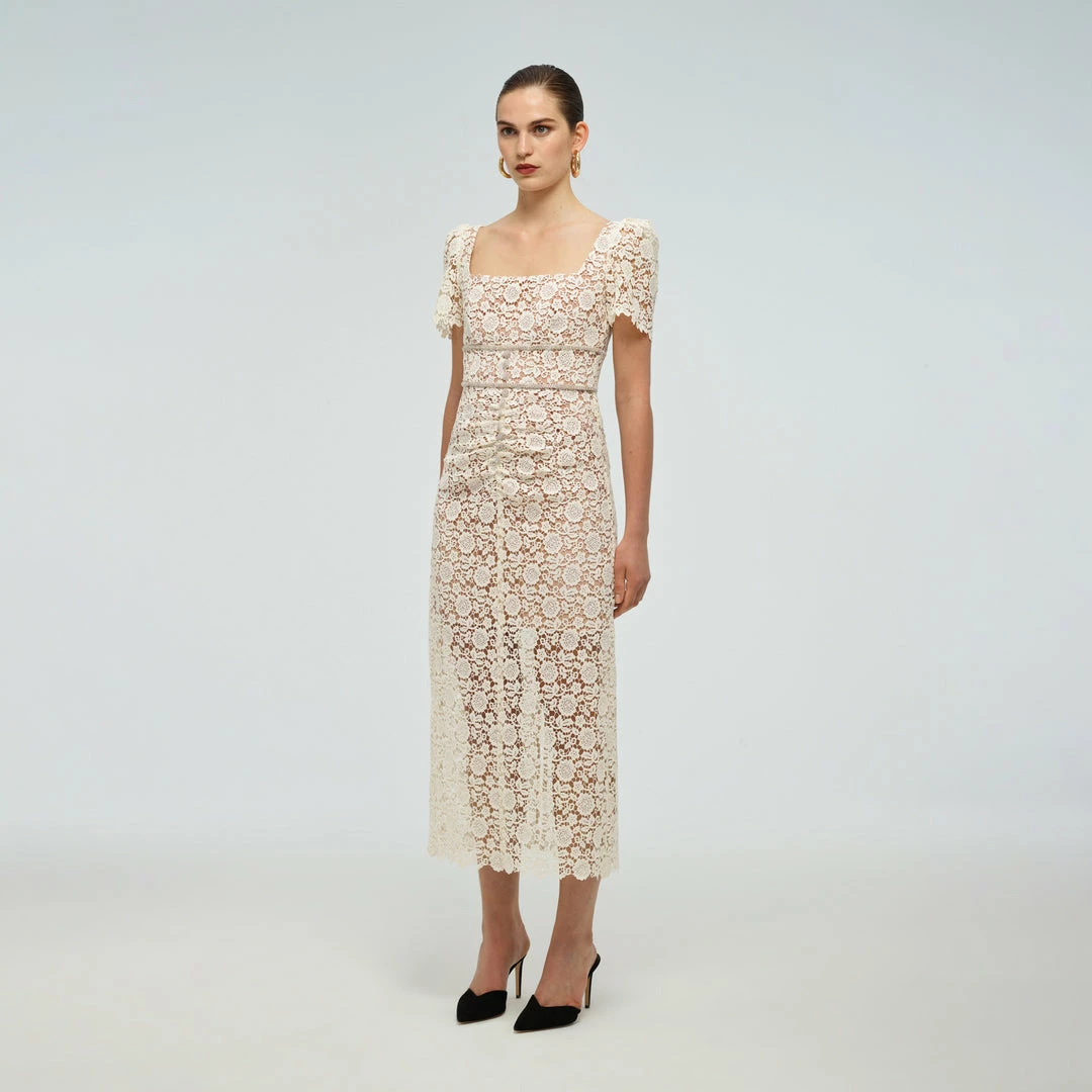 Self-portrait READY TO WEAR Ivory Guipure Fitted Midi Dress