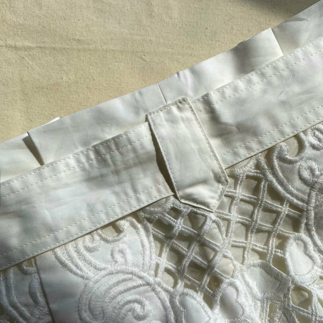 These white shorts are cut from lattice embroidered cotton. They sit high on the waist and are finished with a fabric tie belt. Check the Size Guide to find your perfect fit.