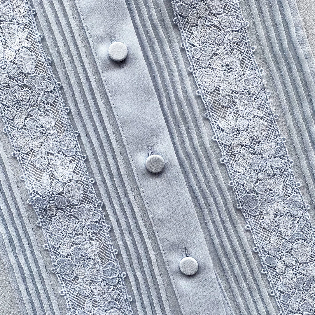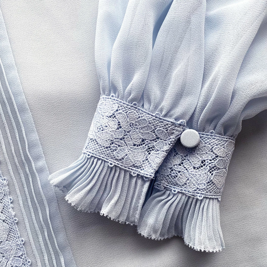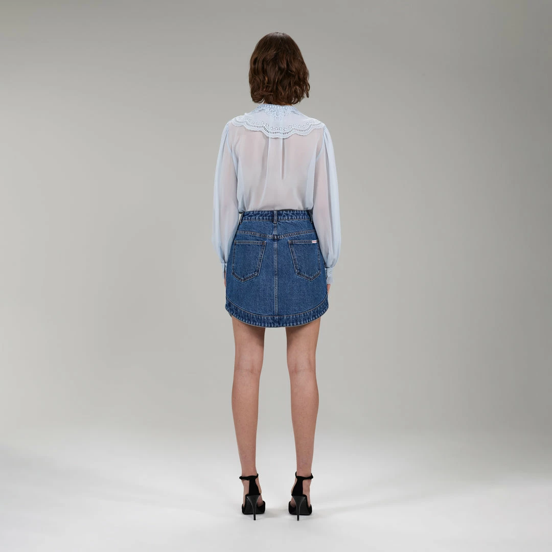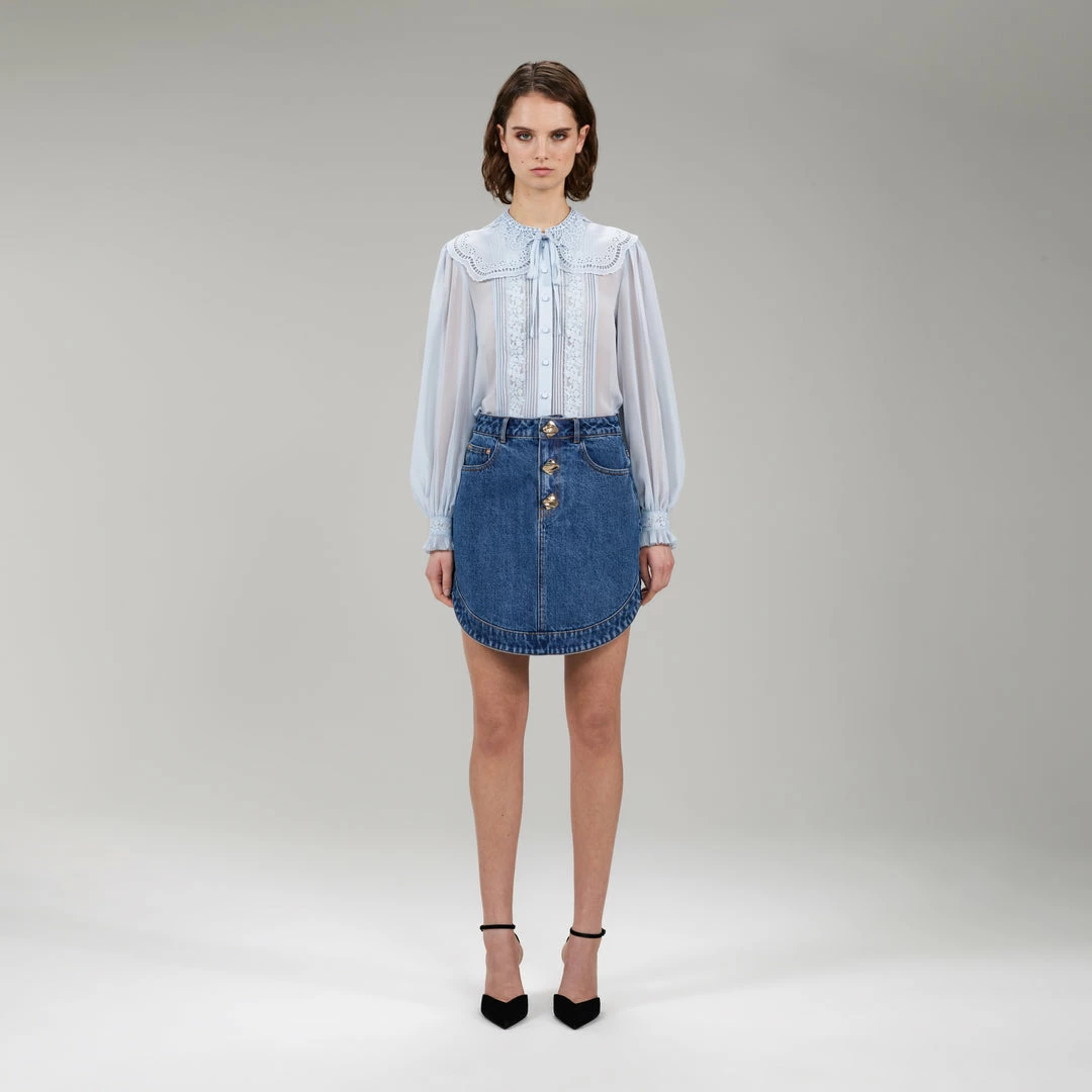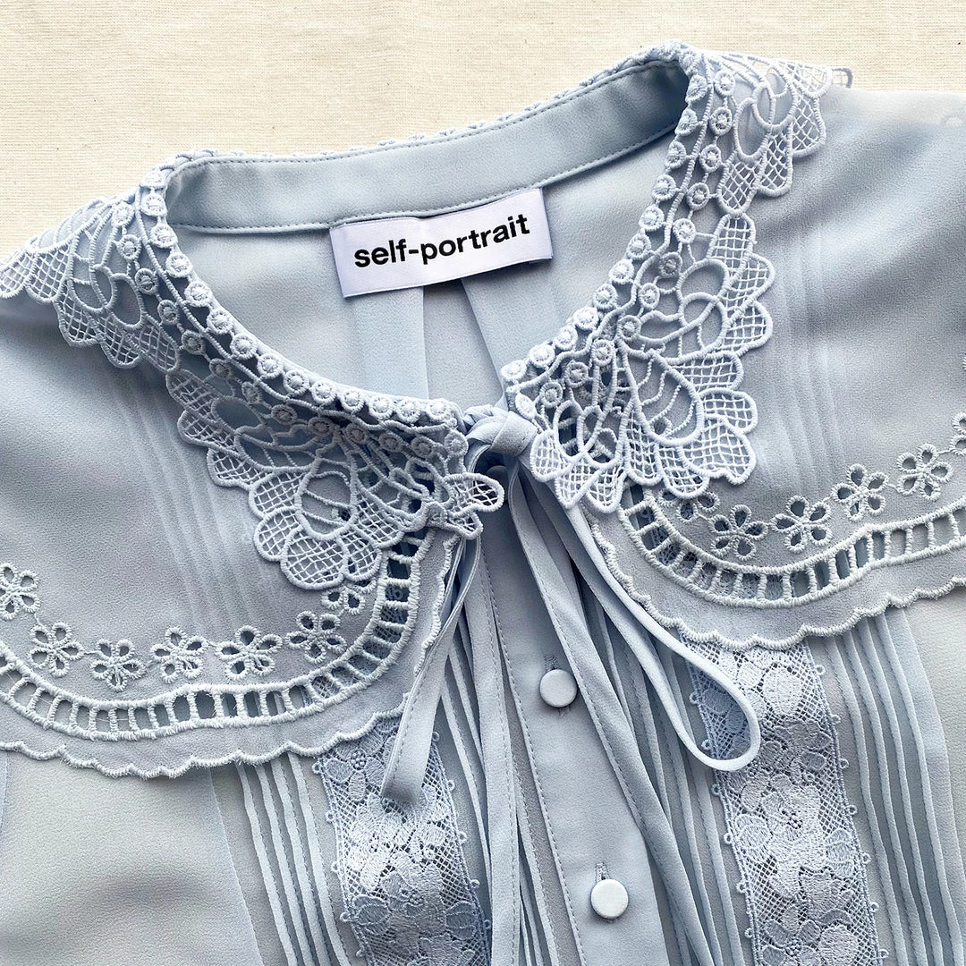 Self-portrait READY TO WEAR Light Blue Broderie Collar Chiffon Blouse
