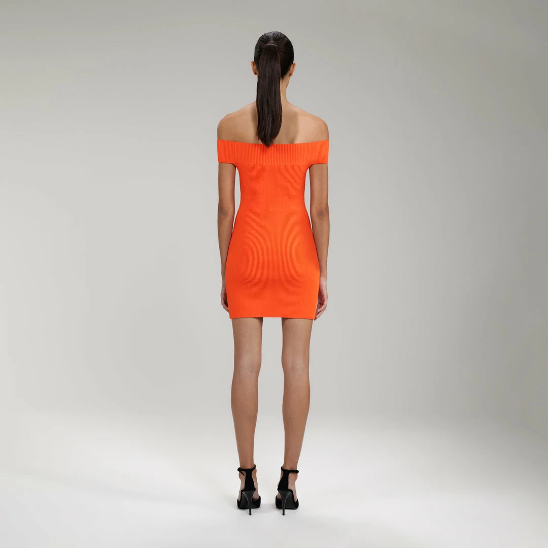 Self-portrait READY TO WEAR Orange Inserted Lace Ribbed Knit Mini Dress