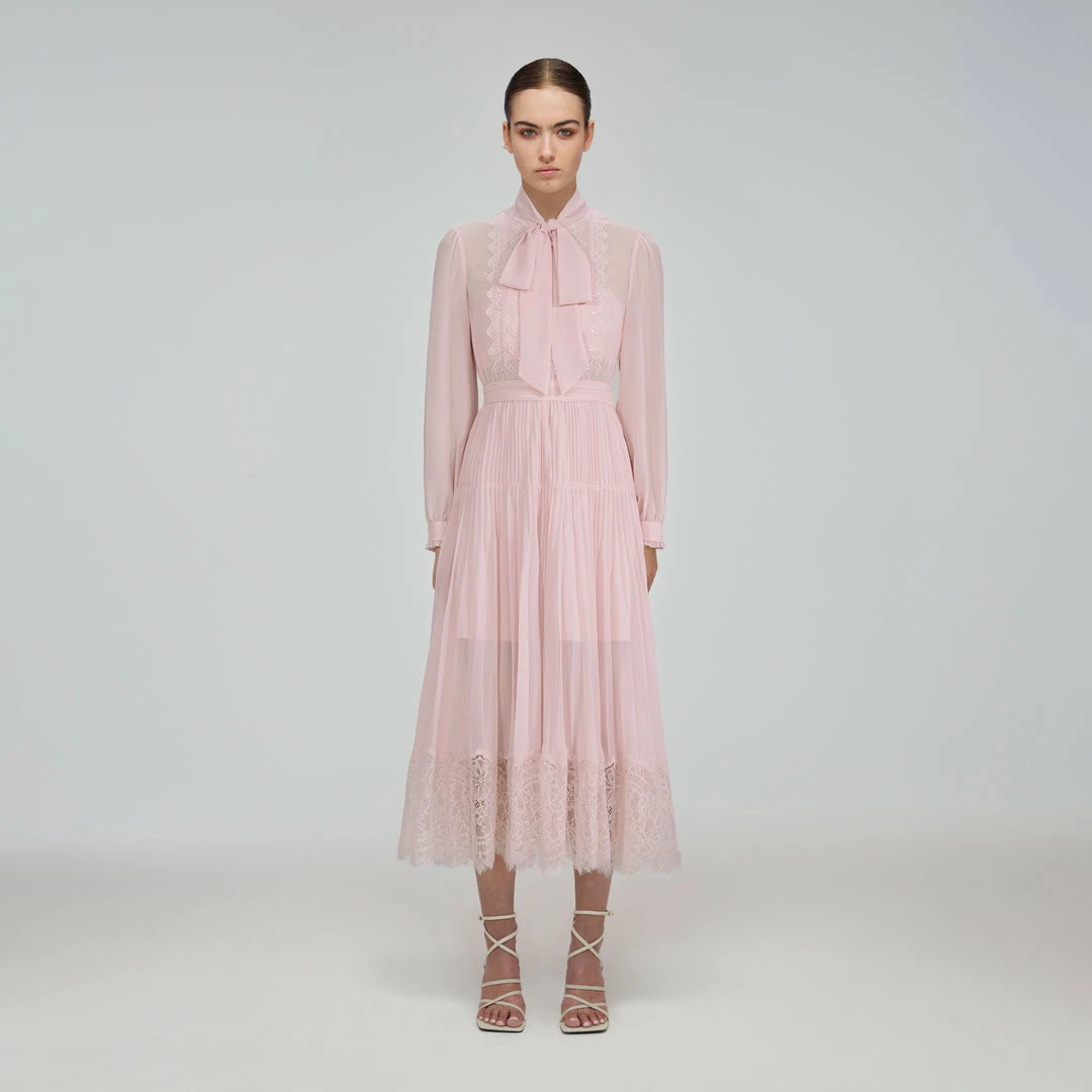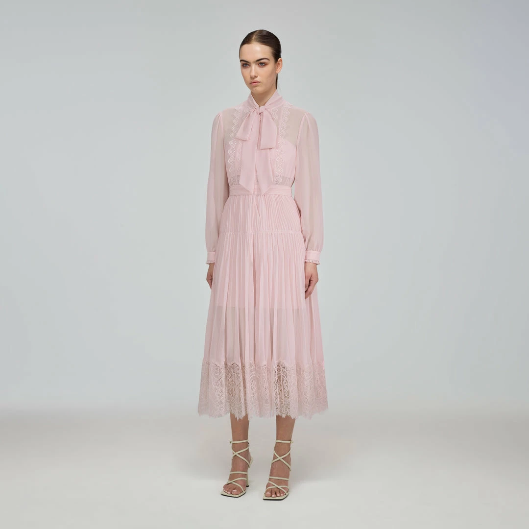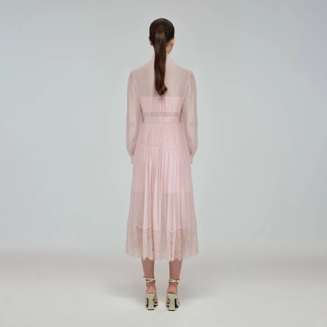 Self-portrait READY TO WEAR Pale Pink Chiffon Trimmed Midi Dress