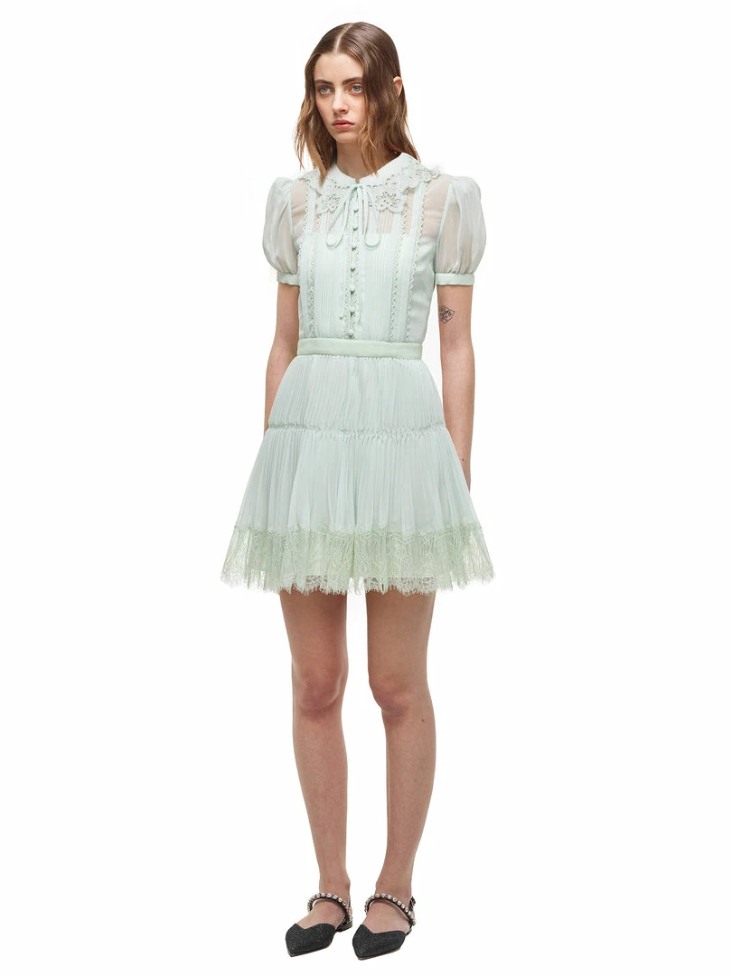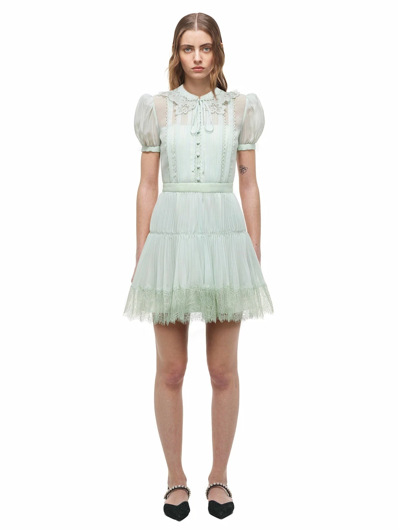 Self-portrait READY TO WEAR Pastel Jade Chiffon Mini Dress