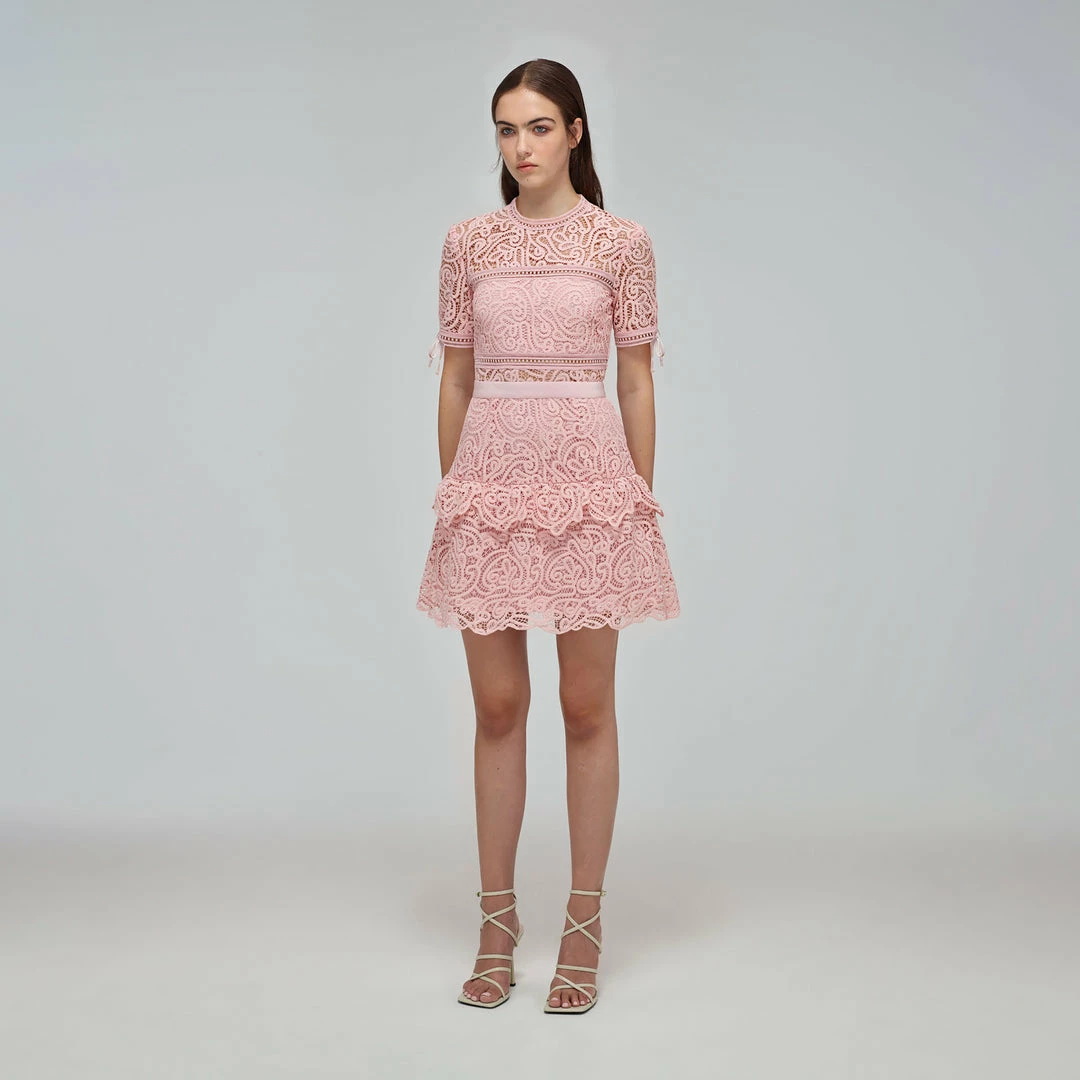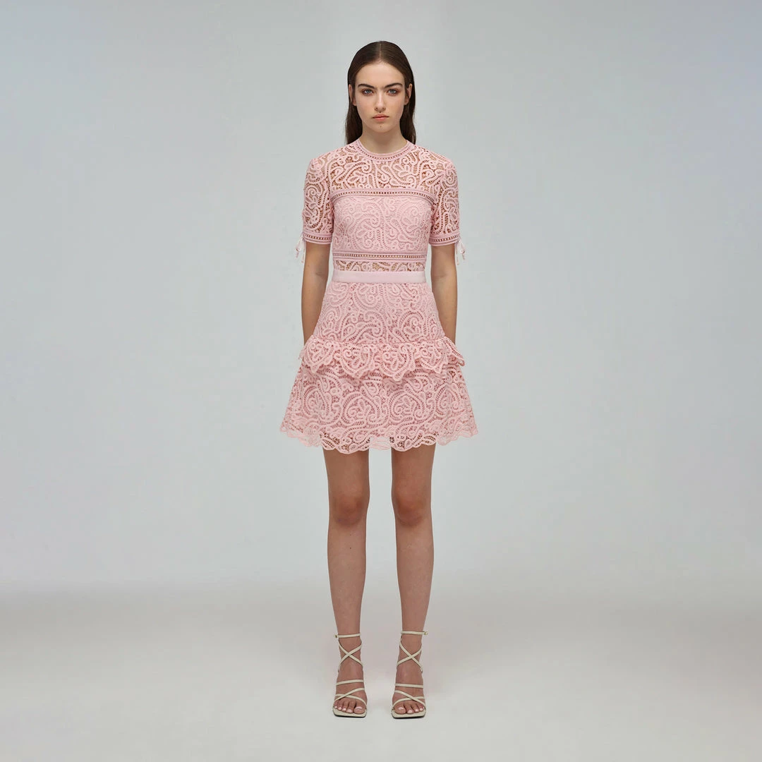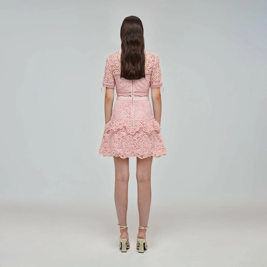 Self-portrait READY TO WEAR Pink Abstract Guipure Mini Dress