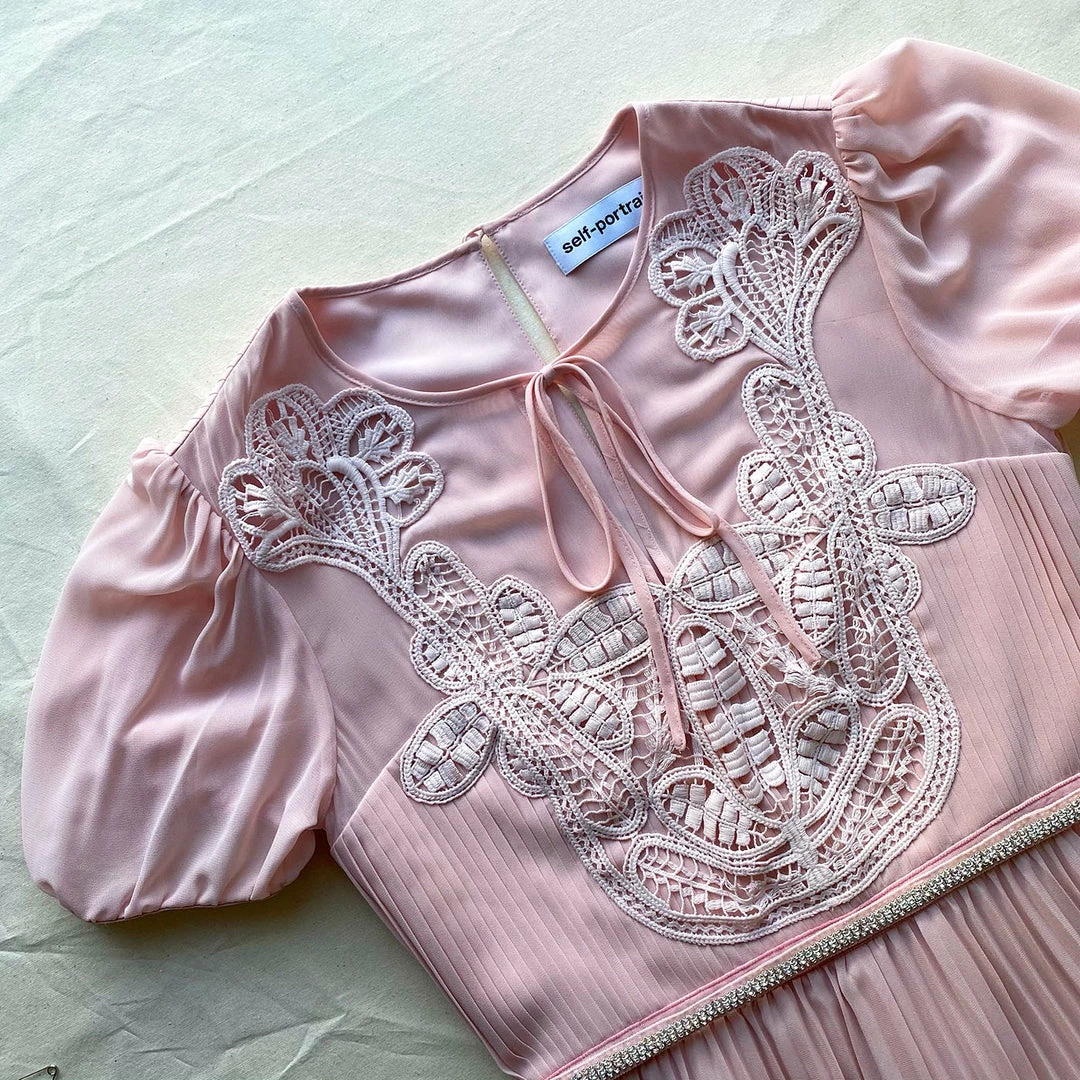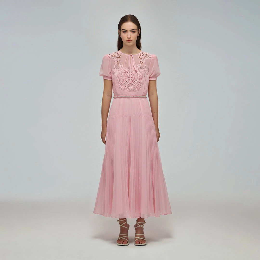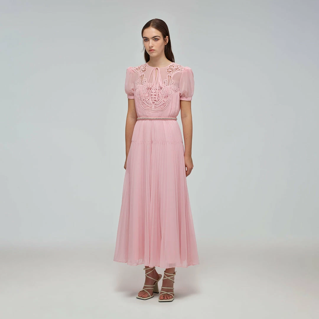 Self-portrait READY TO WEAR Pink Macrame Lace Chiffon Midi Dress