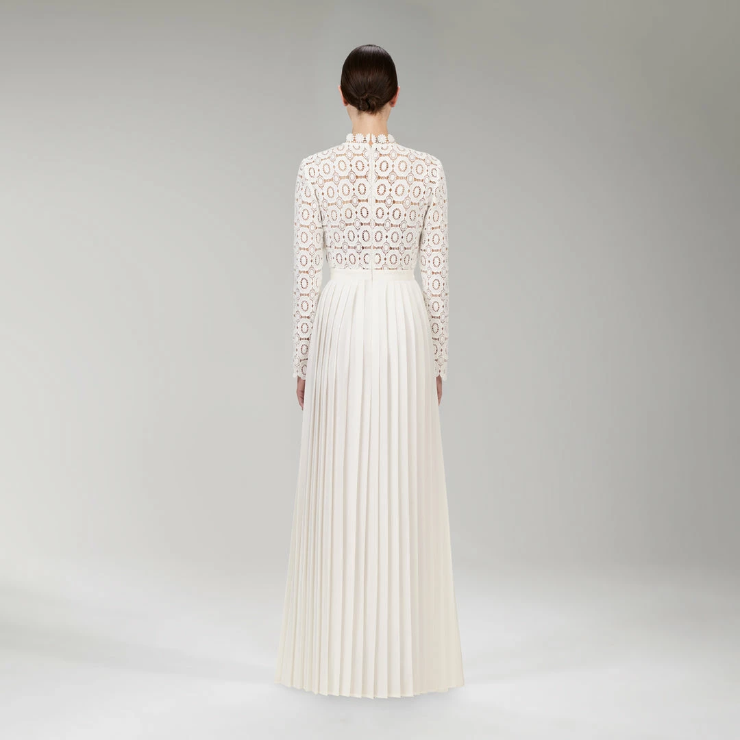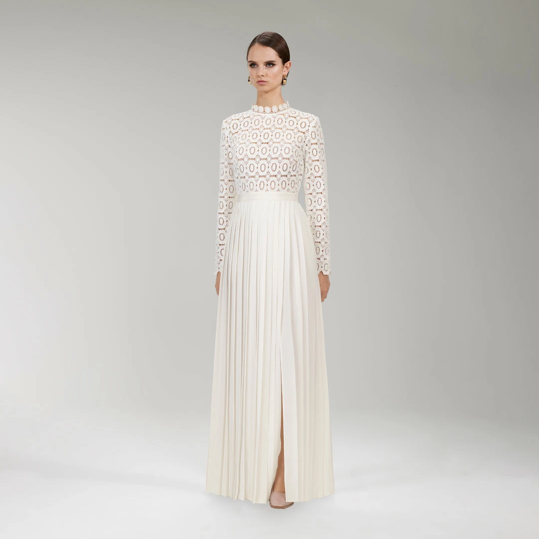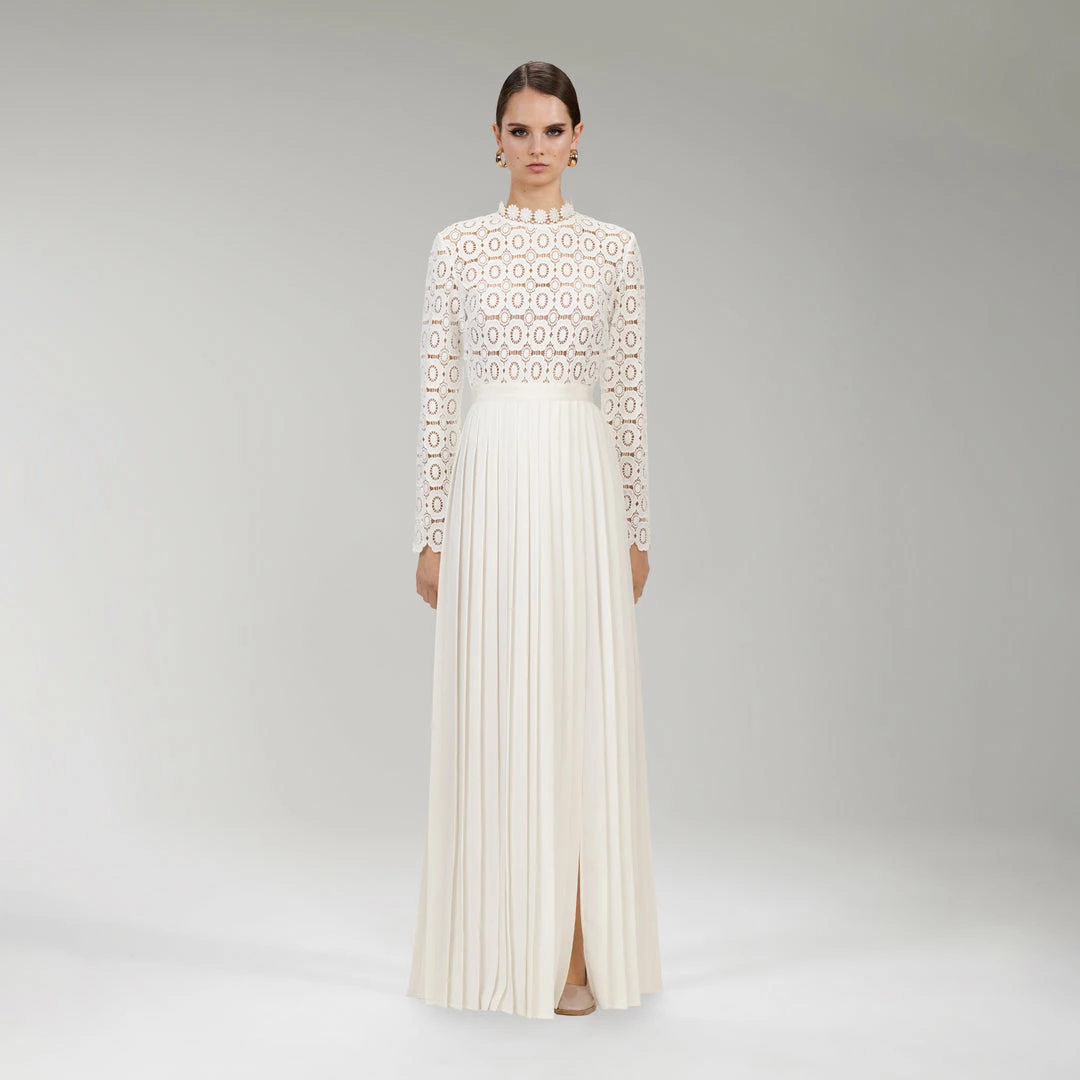 Self-portrait READY TO WEAR Pleated Crochet Floral Maxi Dress
