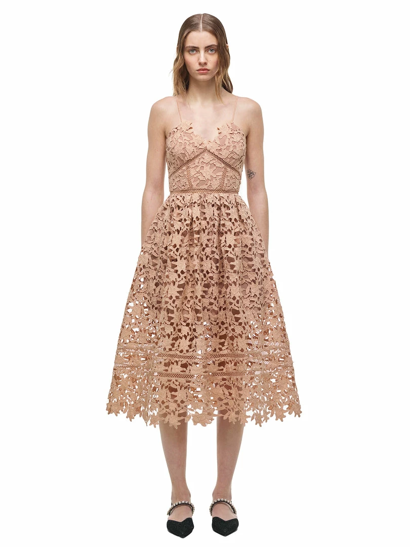 Self-portrait READY TO WEAR Taupe Azaelea Lace Midi Dress