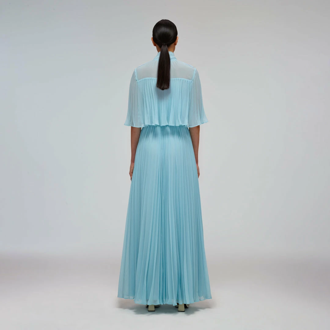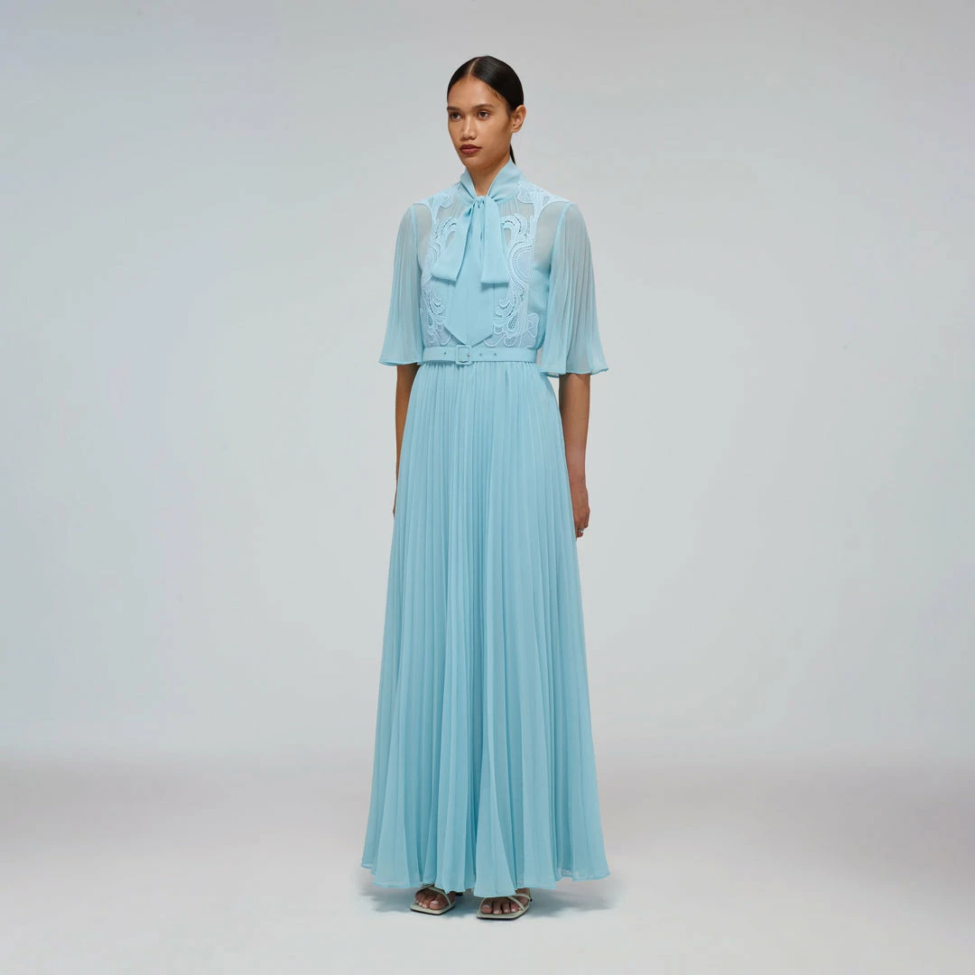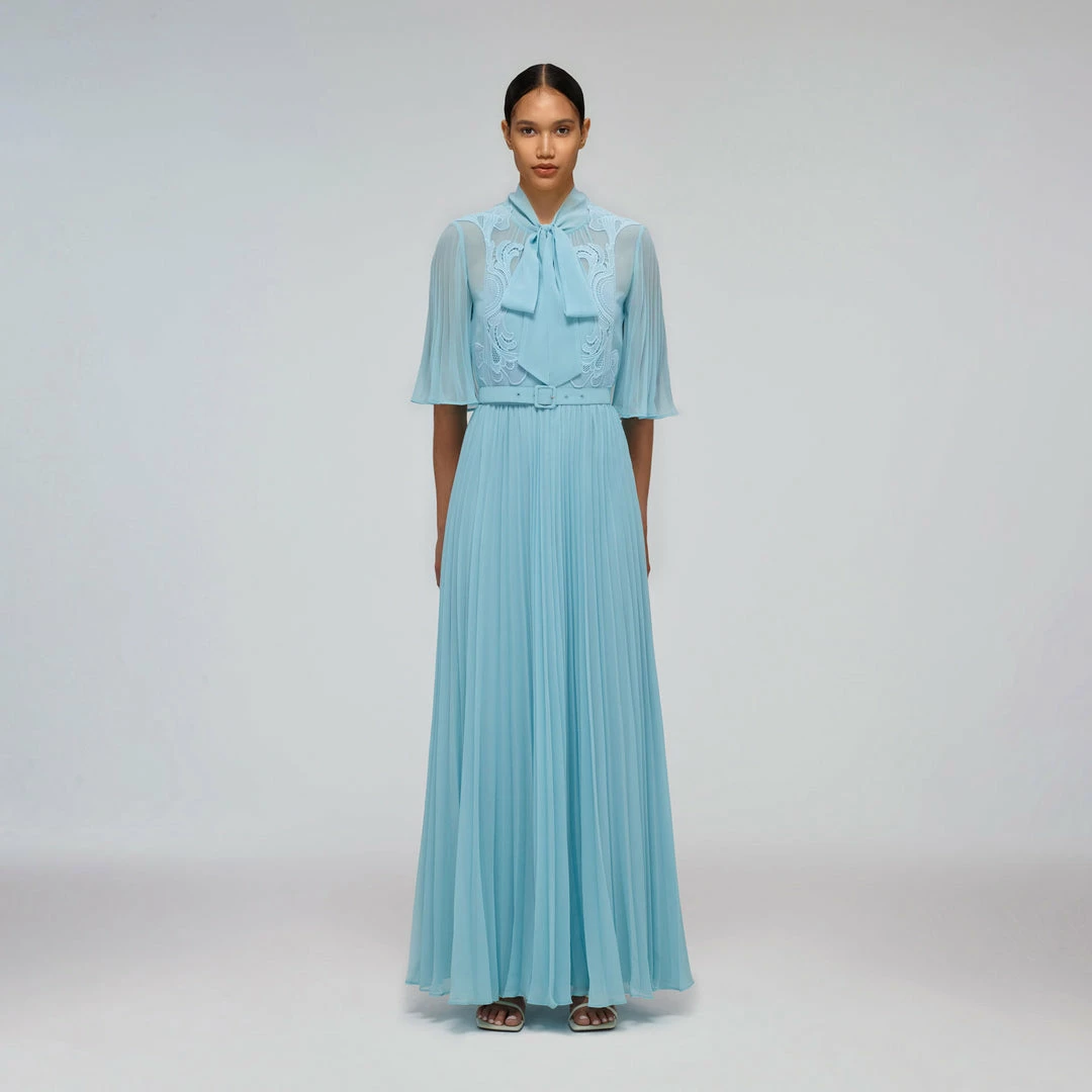 Self-portrait READY TO WEAR Tropical Blue Chiffon Maxi Dress