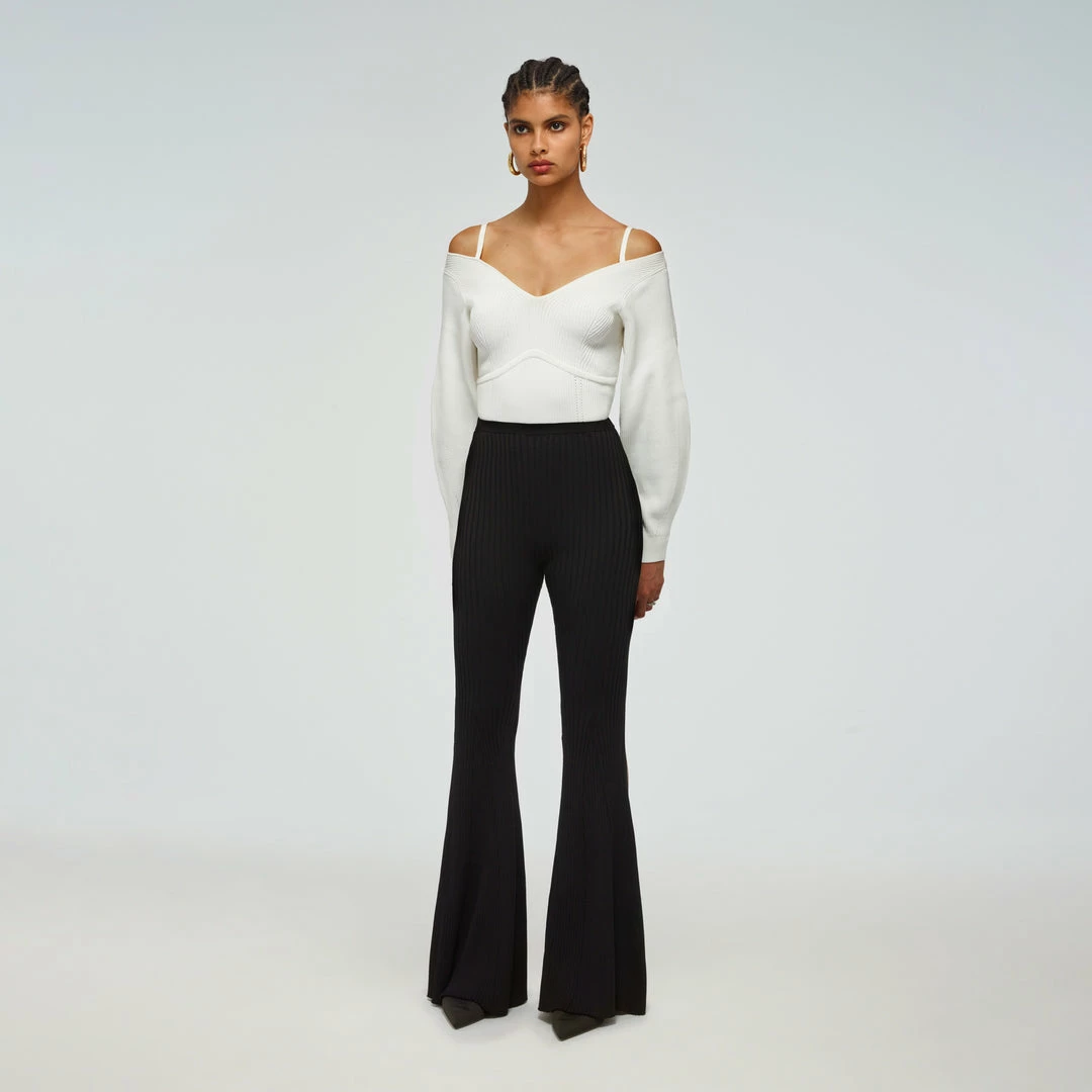 Self-portrait READY TO WEAR White Off Shoulder Knit Top