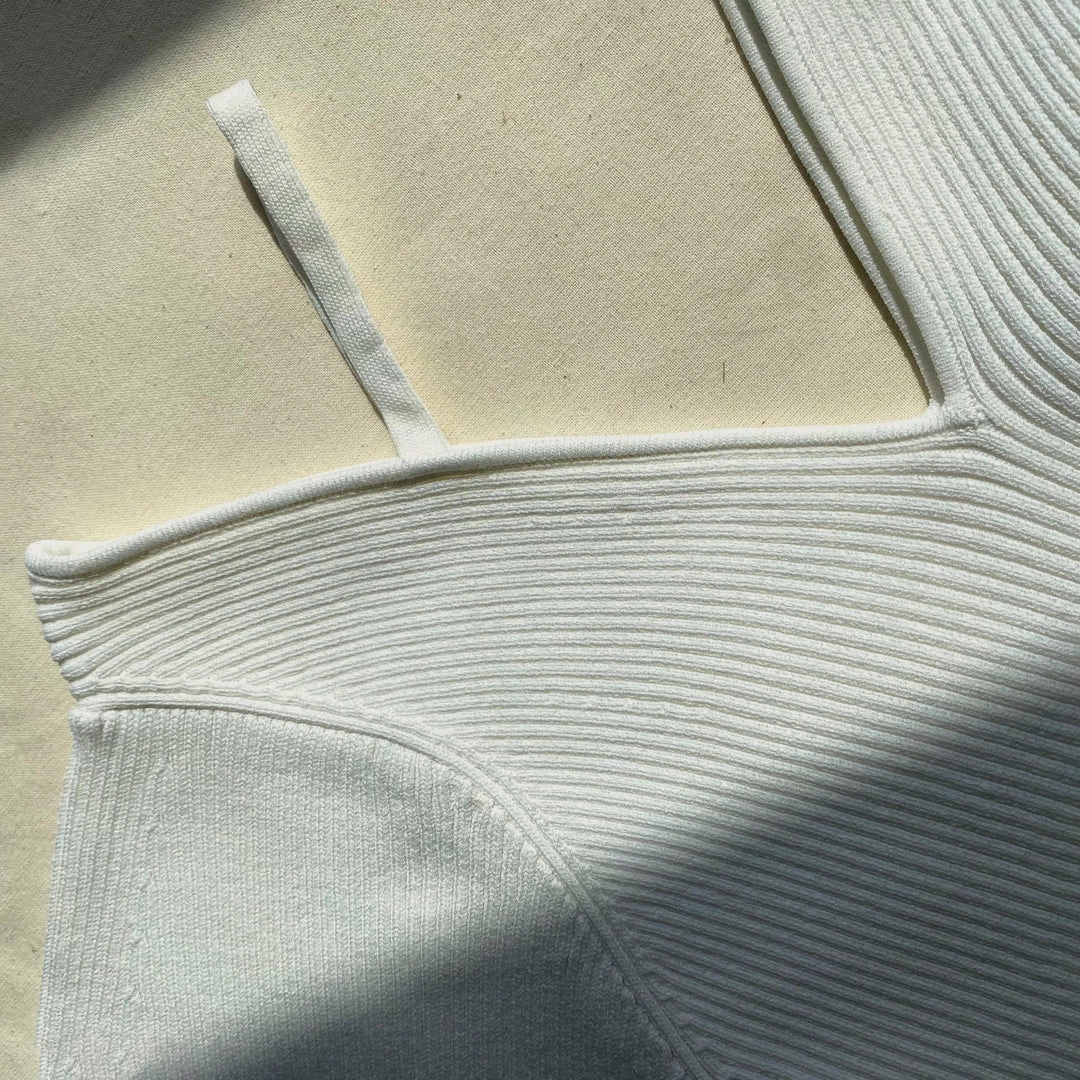 This white ribbed knit top is designed with an off shoulder sweetheart neckline. It features subtle balloon sleeves and bustier details. Check the Size Guide to find your perfect fit.