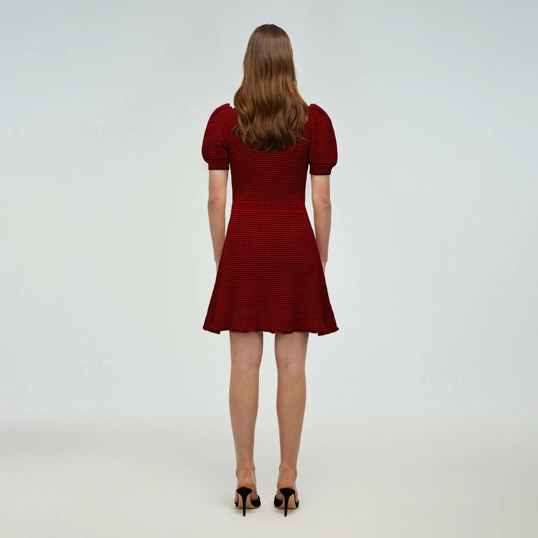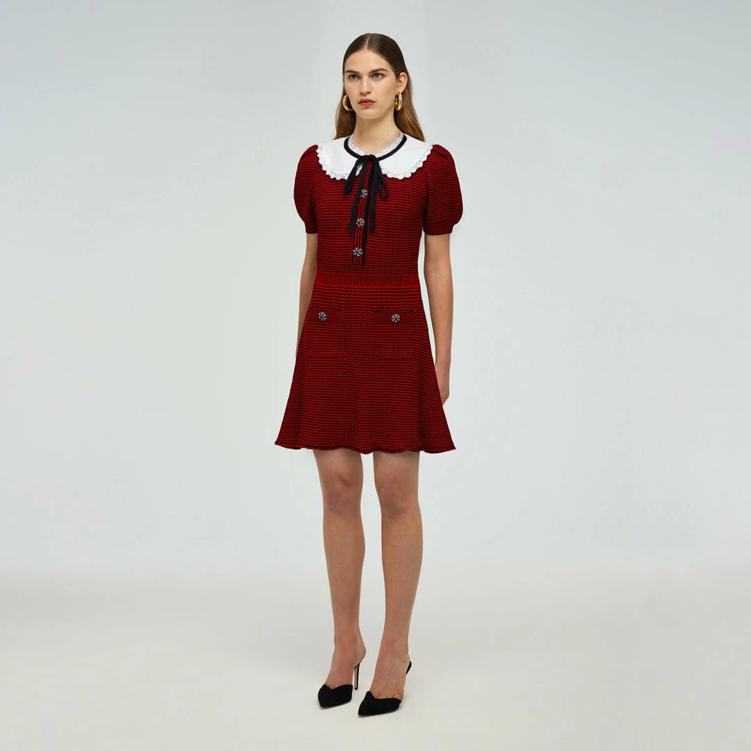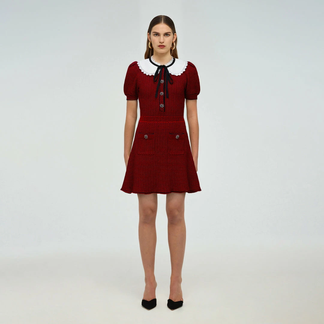 Self-portrait Red And Navy Stripe Knit Dress READY TO WEAR