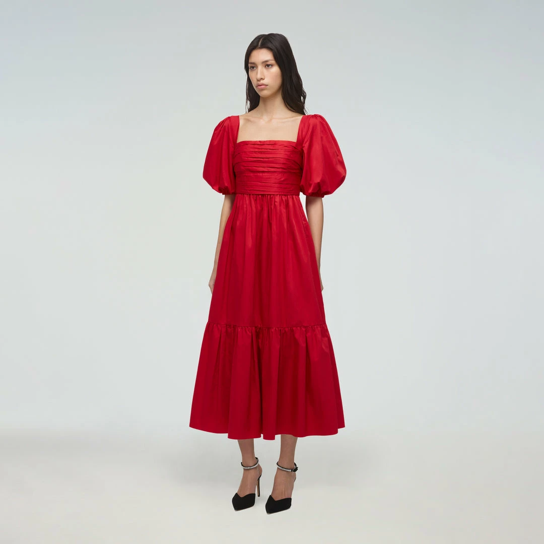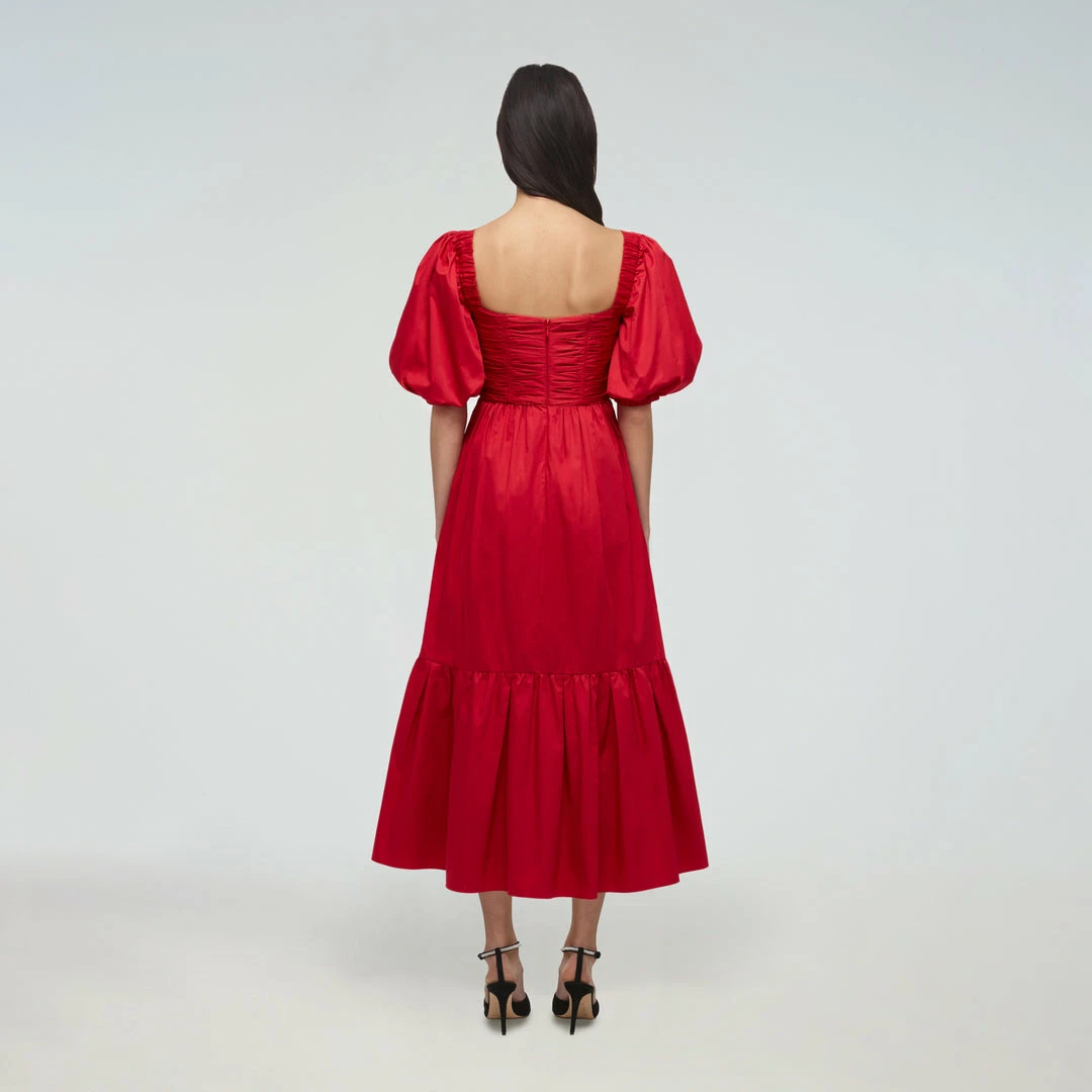 Self-portrait Red Cotton Midi Dress READY TO WEAR