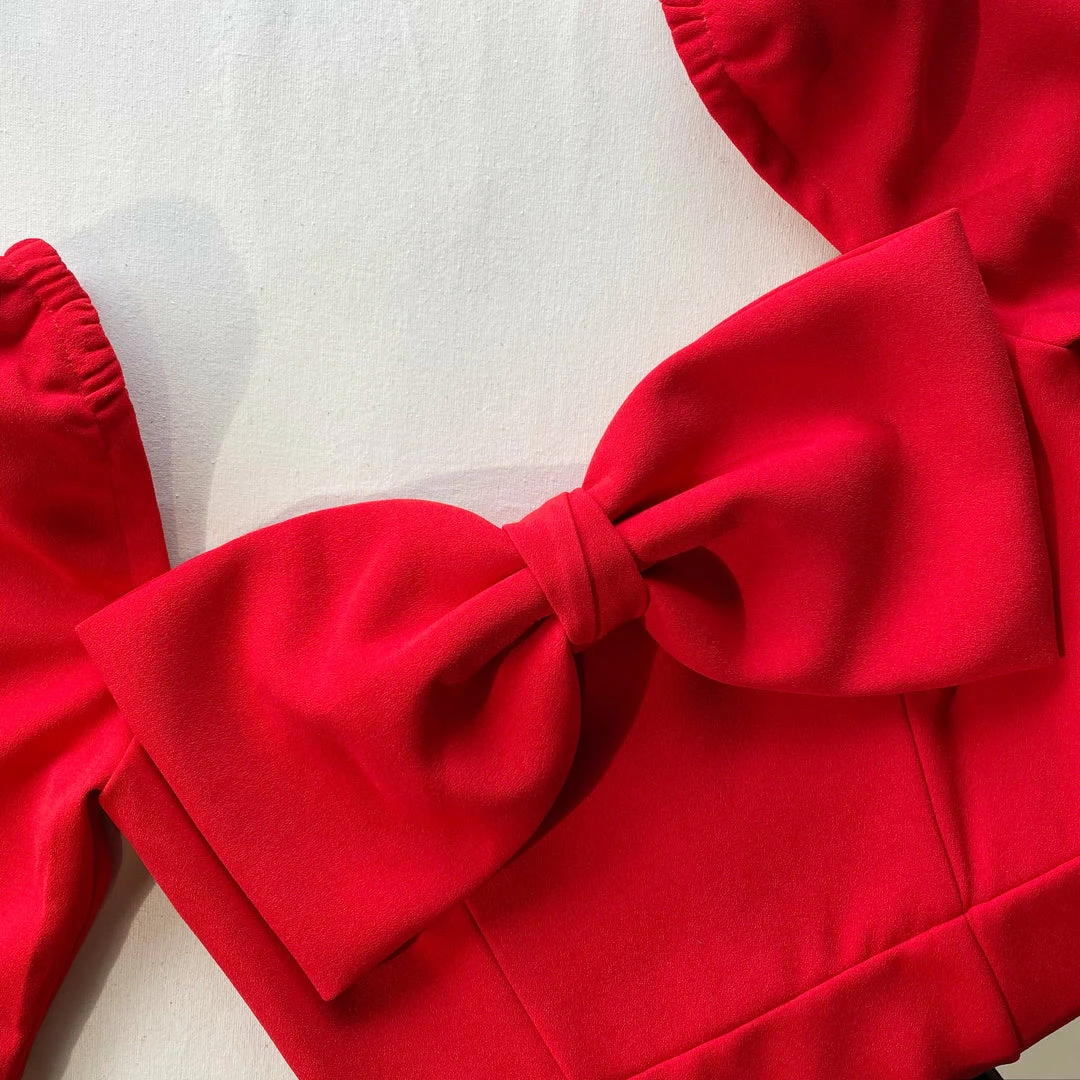 Self-portrait Red Crepe Bow Mini Dress NEW ARRIVALS