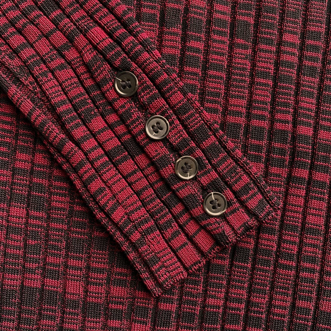 Self-portrait Red Ribbed Knit V Neck Cardigan