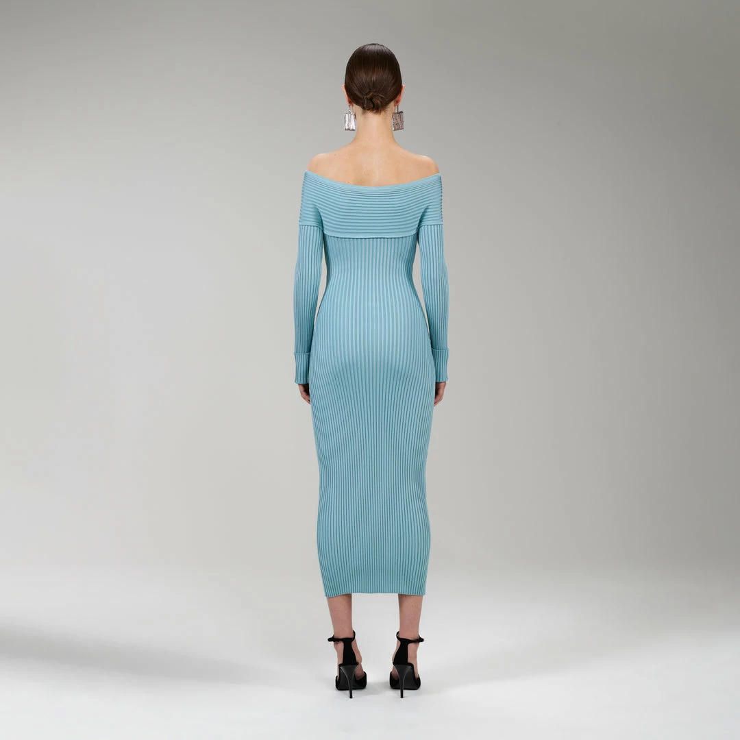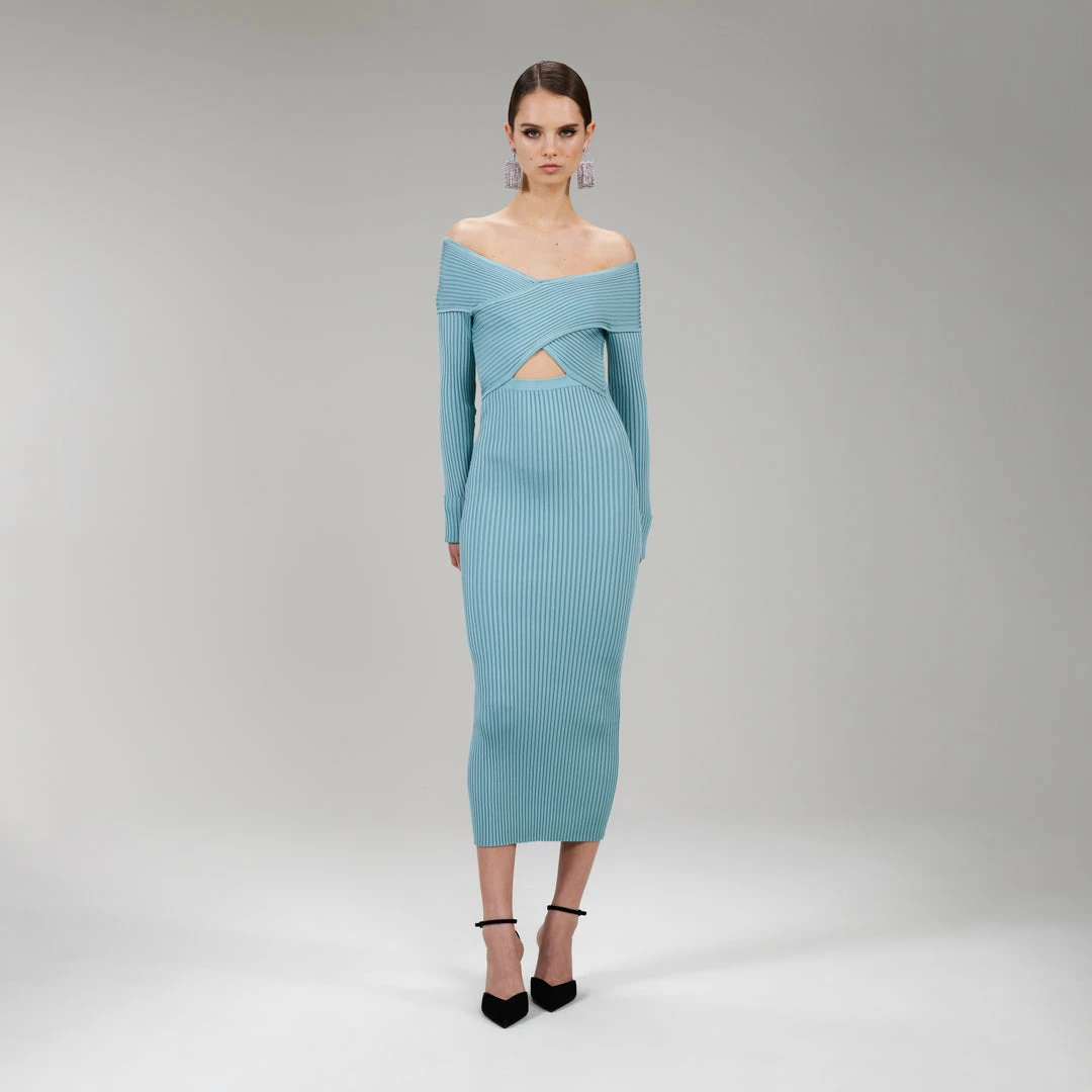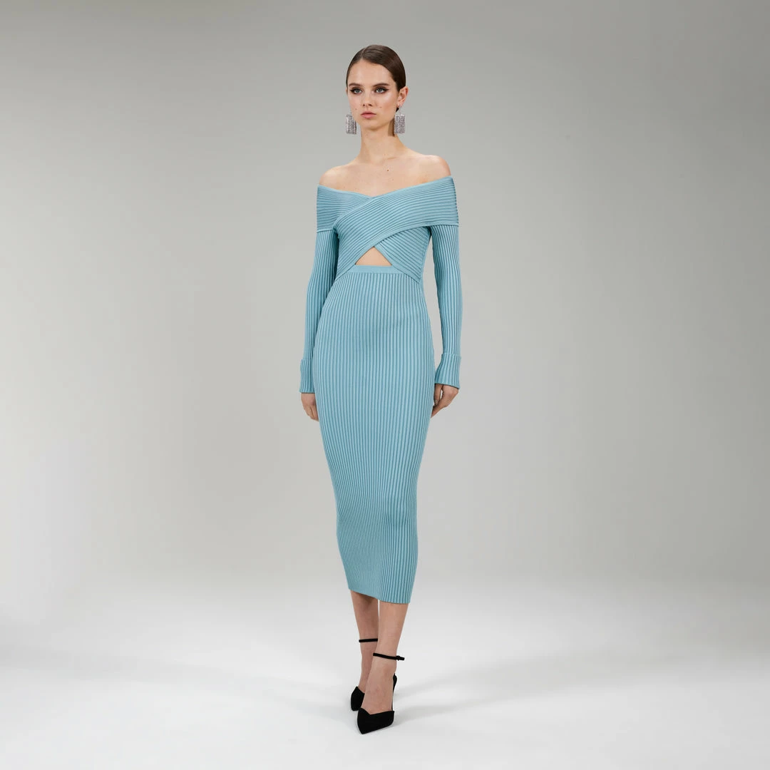 Self-portrait Ribbed Knit Crossover Bust Midi Dress READY TO WEAR