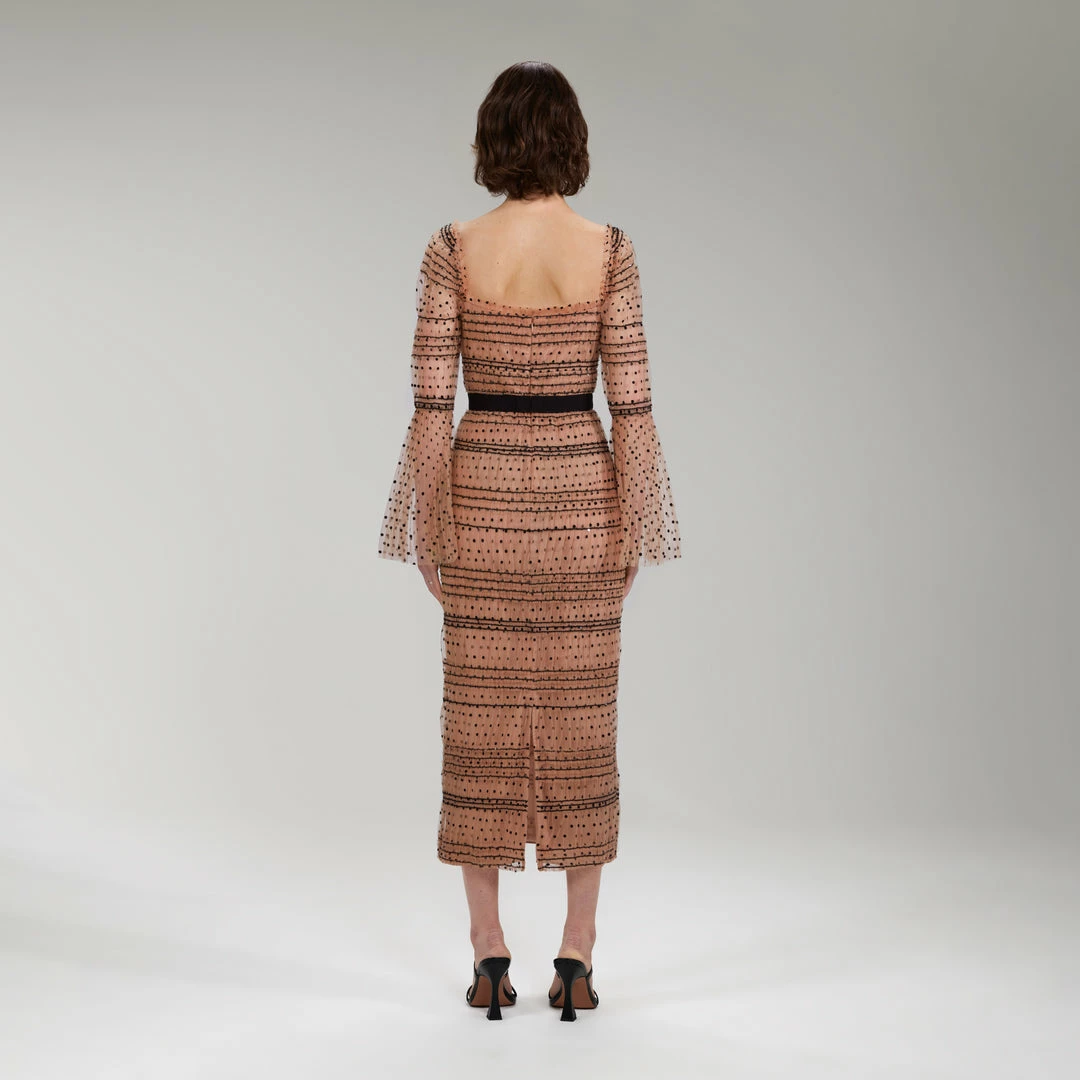 Self-portrait Shirred Polka Dot Midi Dress READY TO WEAR