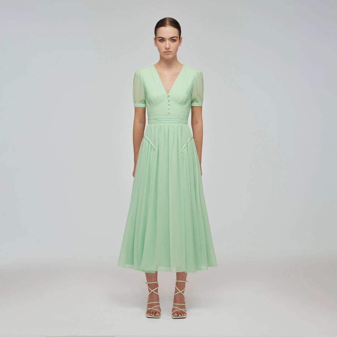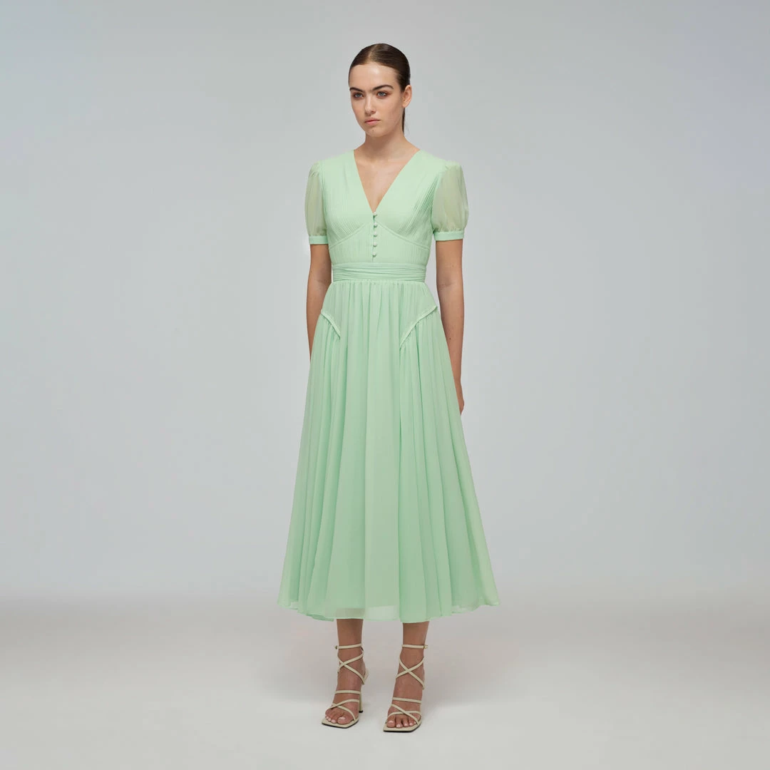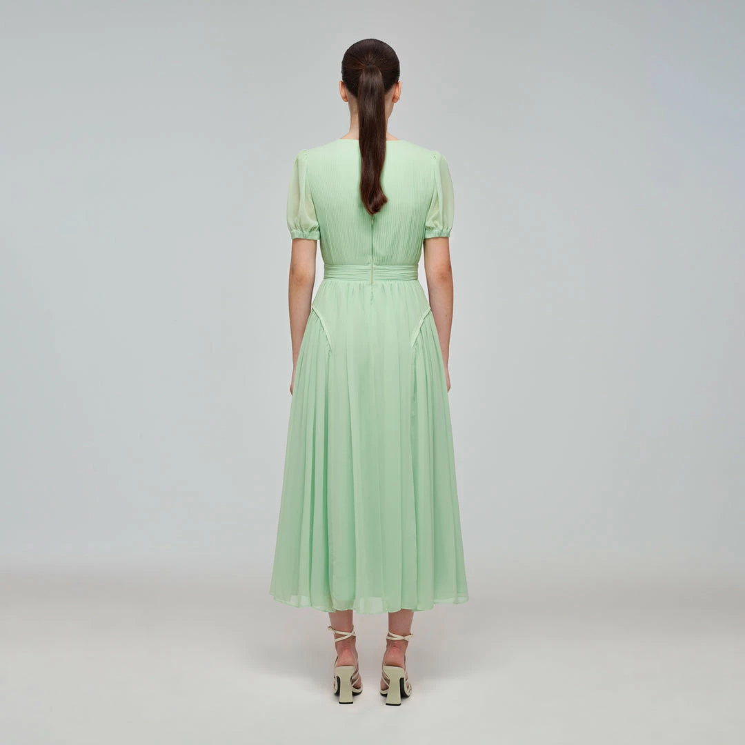 Self-portrait Spearmint Chiffon Midi Dress