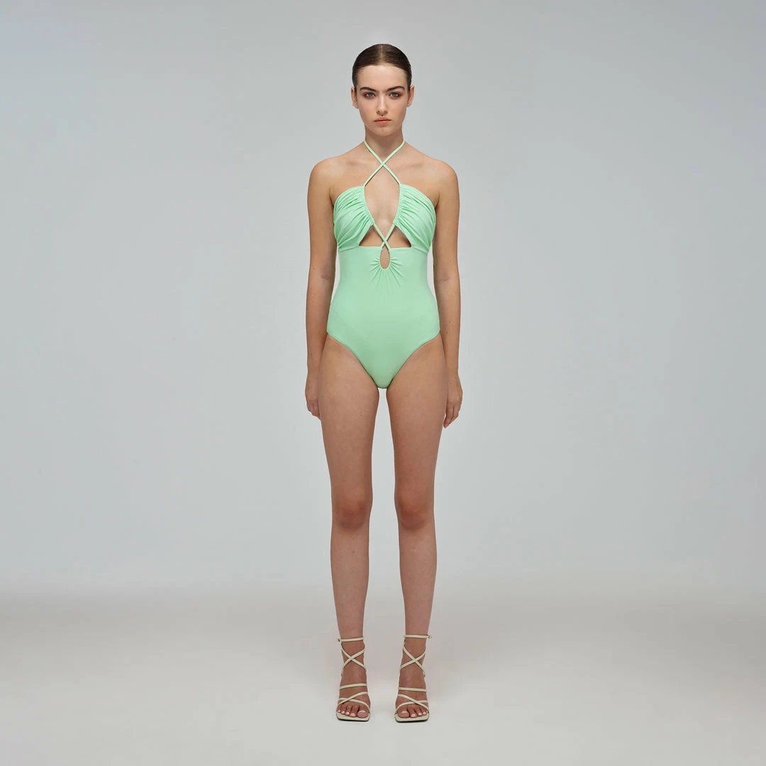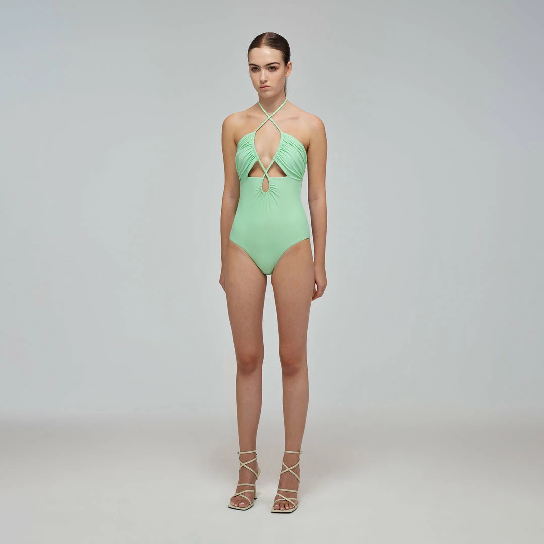 Self-portrait Spearmint Cut Out Halter Neck Swimsuit Swim & Resort