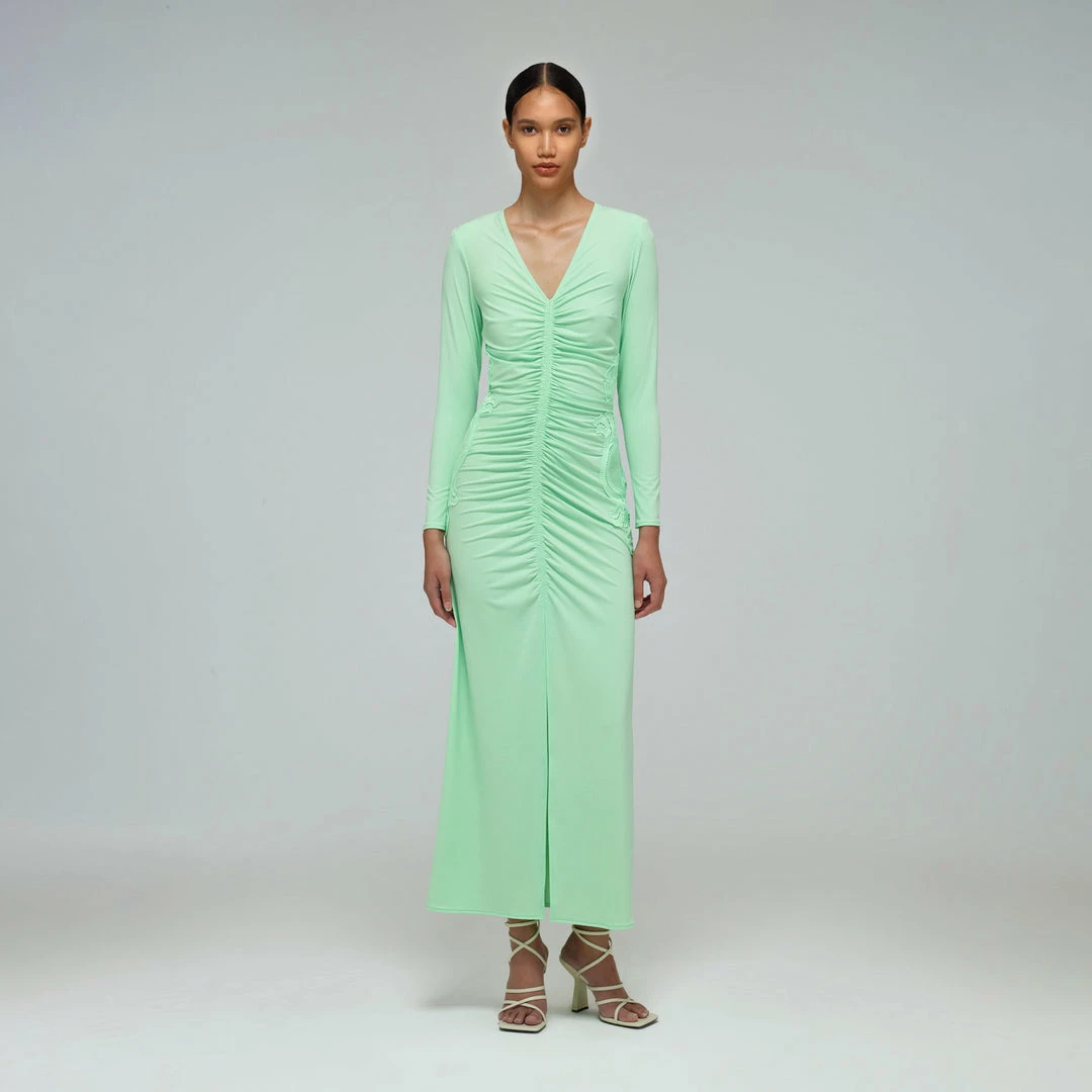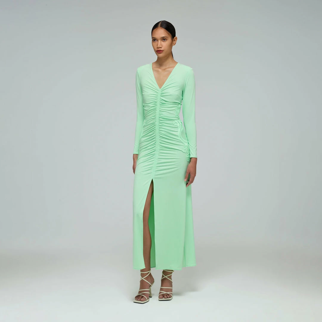 Self-portrait Spearmint Jersey Gathered Midi Dress READY TO WEAR